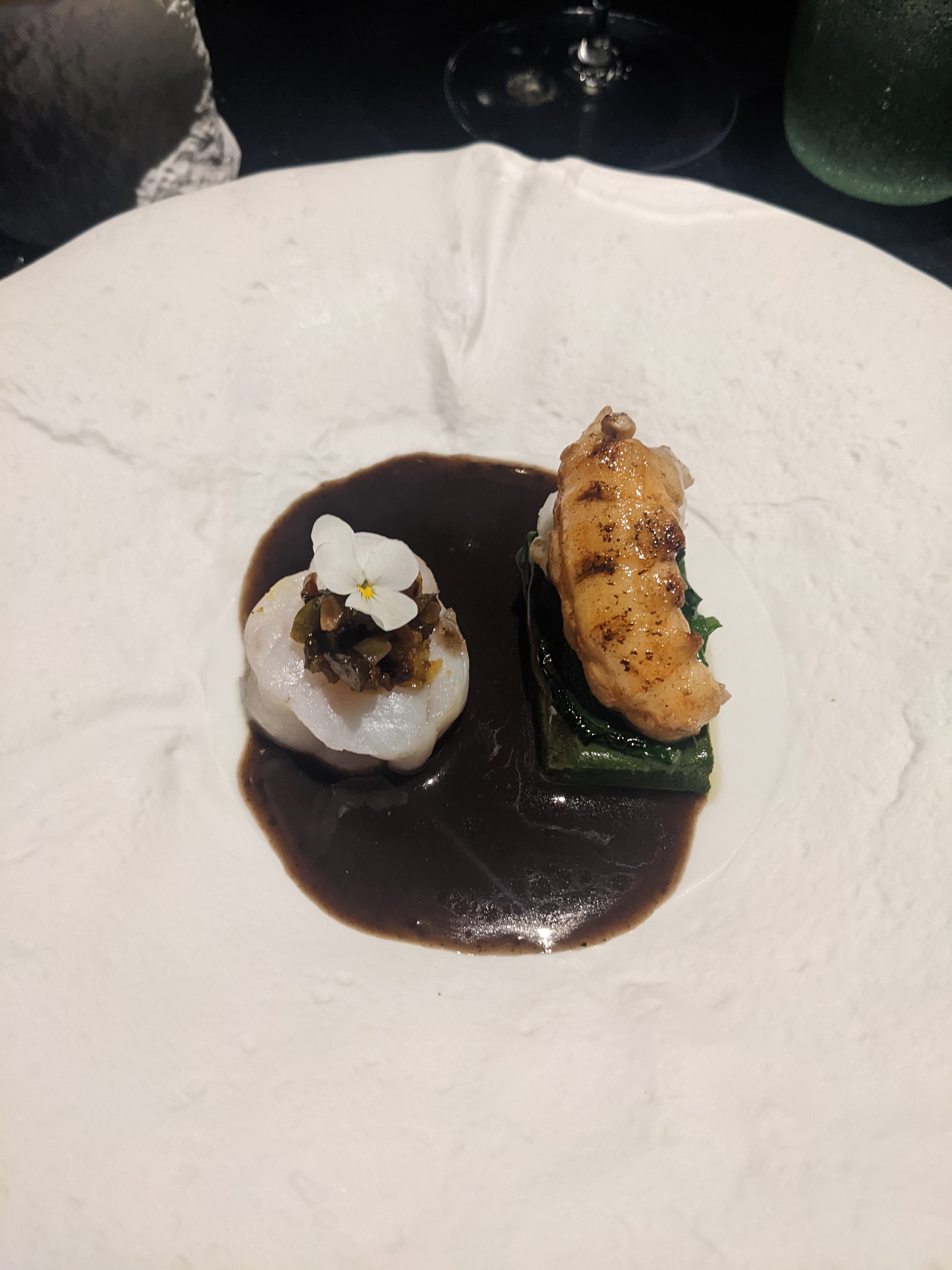 Nous sommes allés quelque part à deux hier soir et quel plaisir que ce n’ait pas été ailleurs… L’équipe nous a offert un superbe voyage dans les abysses dans un jolie cadre intimiste à travers 8 séquences à la fois étonnantes et gourmandes cuisinées à partir de produits de qualité et dans des proportions généreuses. Le service était assuré par l’associé et sommelier en personne qui échange avec bonhomie au fur et à mesure du repas et qui nous propose de parfaites instructions de dégustation. Ne pas hésiter à venir apprécier l’humilité et le talent de ce jeune chef !