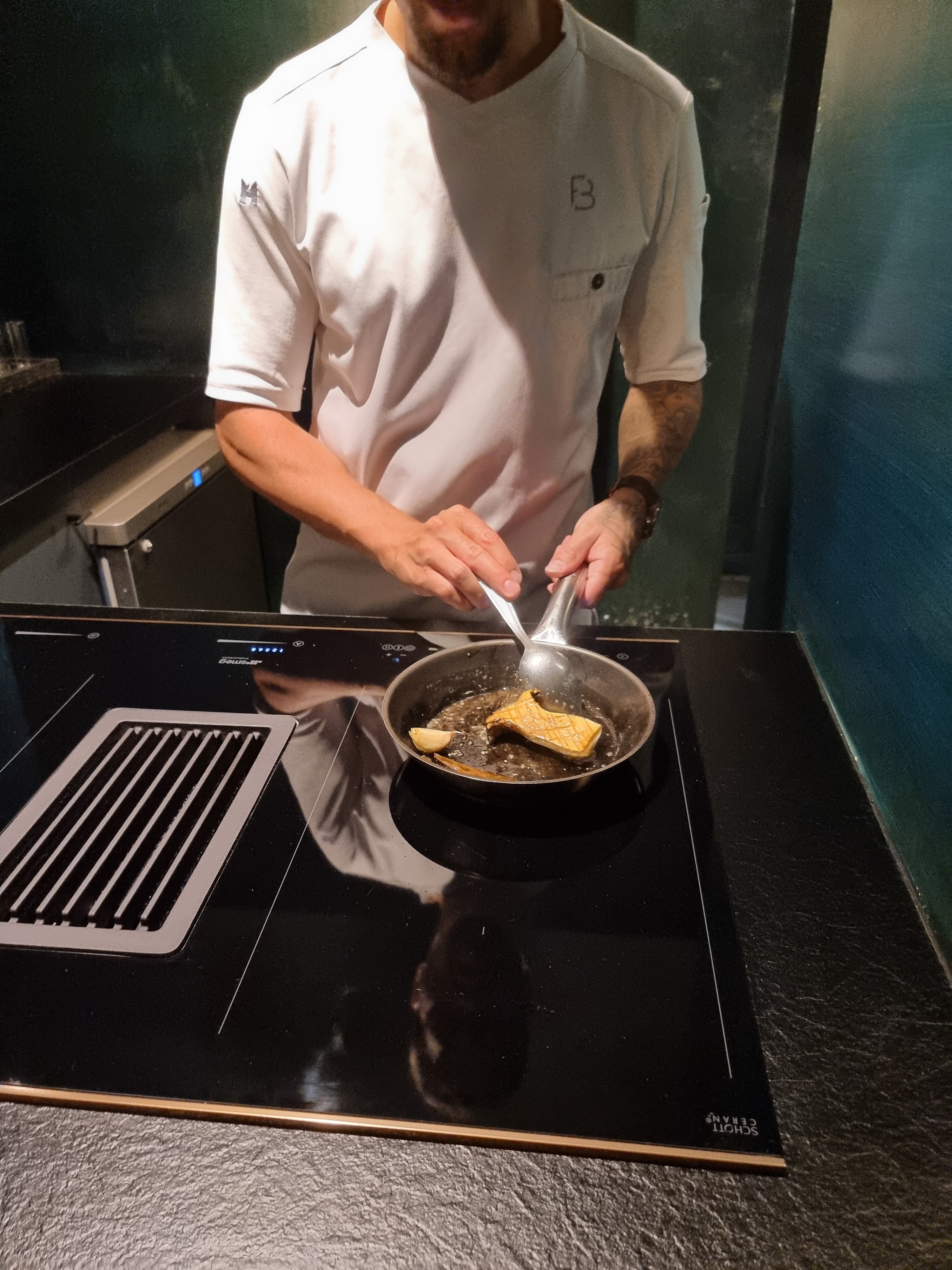 Un repas très agréable et surprenant des mises en bouche jusqu’au dessert. Un chef au petit soin qui fait à la fois le service, la discussion et la démonstration culinaire. Nous avons eu la chance d’avoir la vue directe sur les cuisines où y régnait une belle harmonie. Un vrai moment de partage avec authenticité, excellence et convivialité.