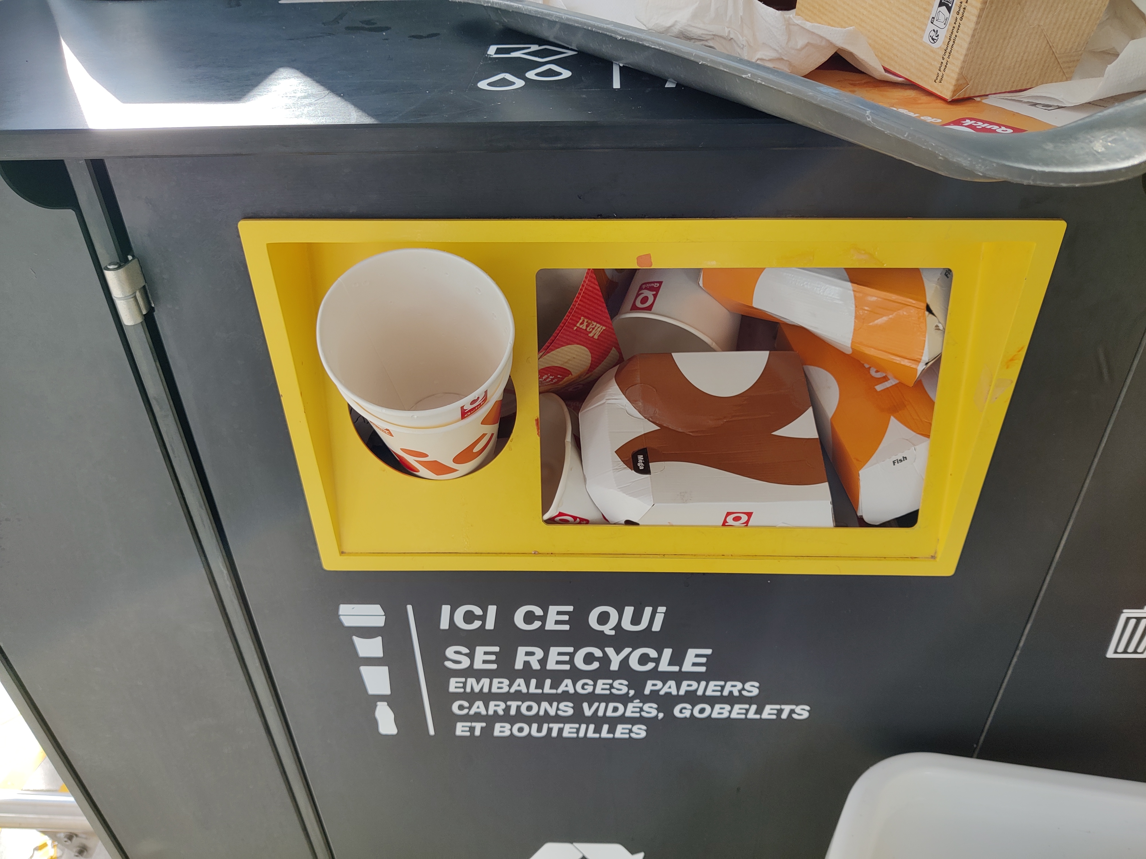 Un petit espace de restauration rapide situé dans la gare Saint Roch. L'endroit est tellement étroit qu'il n'y a de place que pour une seule et unique borne de commande, laquelle ne délivre pas de ticket (deux autres bornes sont toutefois présentes dans le hall à l'extérieur du restaurant) Il n'y a pas de place non plus pour des toilettes. Tout ici est restreint, pareil pour les places assises : il y a trop peu de tables et de chaises, et en cas de forte affluence, il vaut mieux emporter sa nourriture pour la manger ailleurs... Certains consentent d'ailleurs à manger debout devant les poubelles...qui débordent... Faute de personnel, les poubelles ne sont pas vidées régulièrement... et comme l'espace est petit, cela donne très vite une impression de fouillis. Sinon, concernant les menus commandés et payés au comptoir, le prix était correct. Quant au goût, il reste assez équivalent aux autres enseignes de fast-food. Le personnel, bien que débordé lors de notre visite, était poli. Un endroit à visiter uniquement si vous n'avez pas d'autres choix possibles, dans ce cas : je vous conseille de privilégier les bornes extérieures et la commande à emporter.