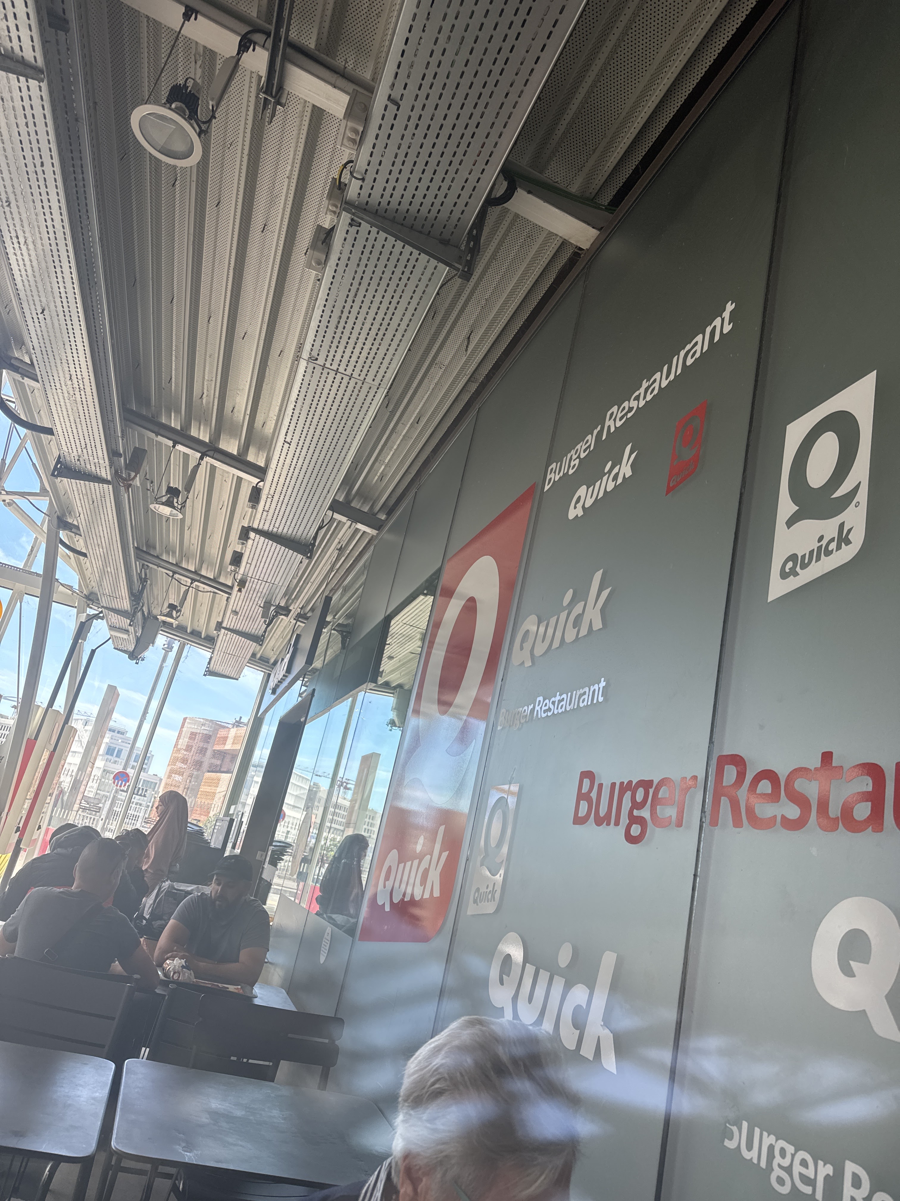 Une galère pour trouver ce Quick, aucune indication même de l'extérieur c'est difficile à voir qu'on est devant un Quick. Étant dans une gare je pense que vous ne pouvez pas faire ce que vous voulez question affiche, mais il est vraiment très discret. En dehors du personnel, jeune et très dissipé, pas de mauvaise surprise côté cuisine c'était bon et service plutôt rapide.