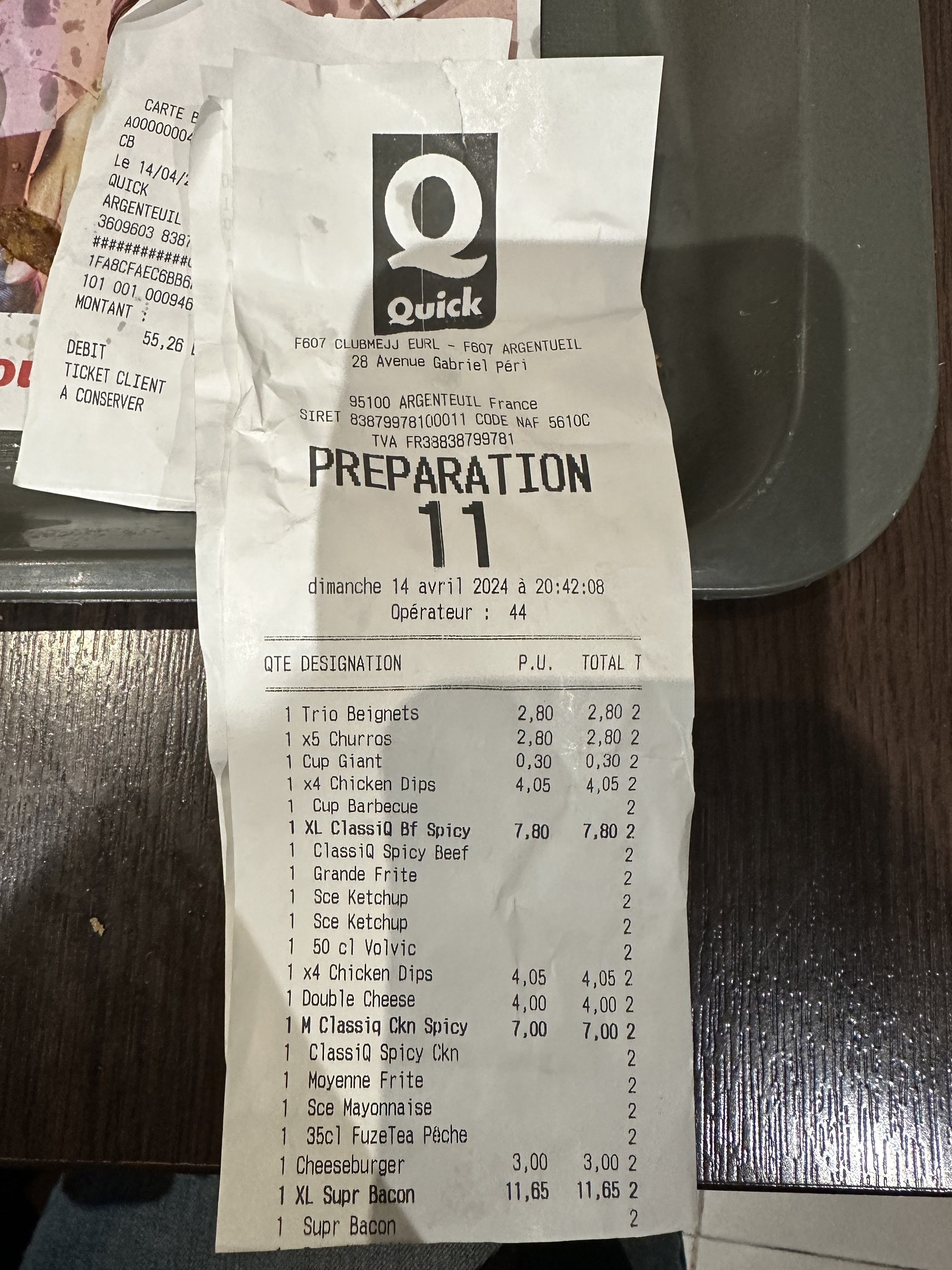 Après mes dizaines de mail aucun remboursement, j ai meme contacté le siège, mais rien! La dame me dis qu elle fais la relance, mais en faite rien n en retour, du vol total! Les dames du guichet ont du bien se goinfrer! Nous avons payer 32.50€ en effet, nous sommes venu le 27/03 au Quick d Argenteuil a la borne, environ de 12h30 à 13h avec 4 menu dont 2 enfant j ai été debité de 32,50 alors que nous avons jamais manger nous sommes parti sachant que c était extrêmement long et surtout que la dame du guichet nous a bien dis qu il y avais rien de notre commande!!! Je souhaite remboursement de notre repas non consommer. Arnaque total, ne payer pas a la borne!! Vérifier vos compte bancaire! Vraiment ça vaut plus rien ce Quick aux odeurs fétide quel horreur Envoyé à partir de Outlook pour Android Envoyé à partir de Outlook pour Android Envoyé à partir de Outlook pour Android