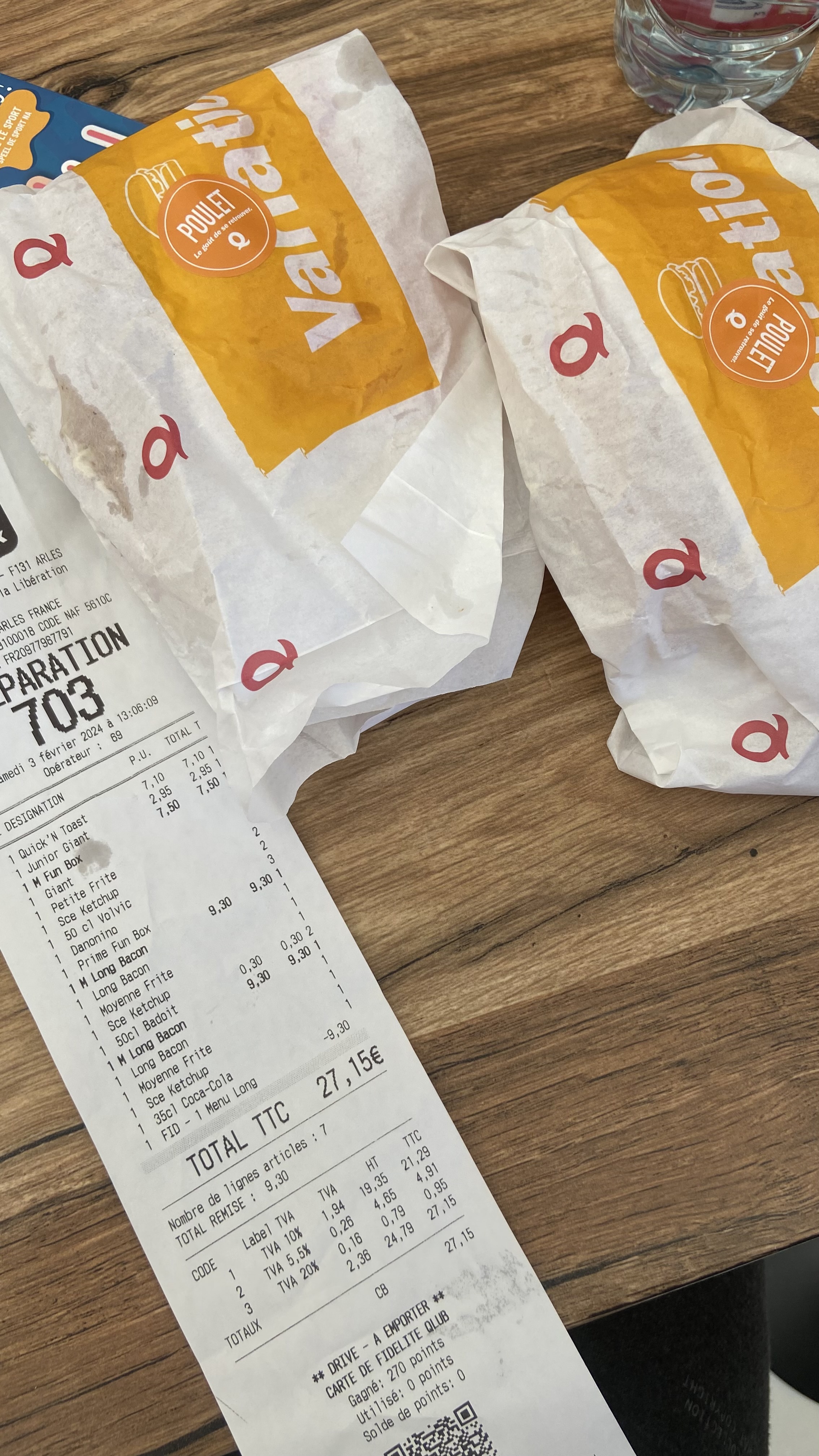 Faites attention qu'elle bip bien votre carte de fidélité!!!!!! Pour une commande à 60€ la moindre des choses c'est de biper le QR code correctement, de plus elle a clairement fait exprès !!! Sandwich très bon mais frites immangeable ! Dommage