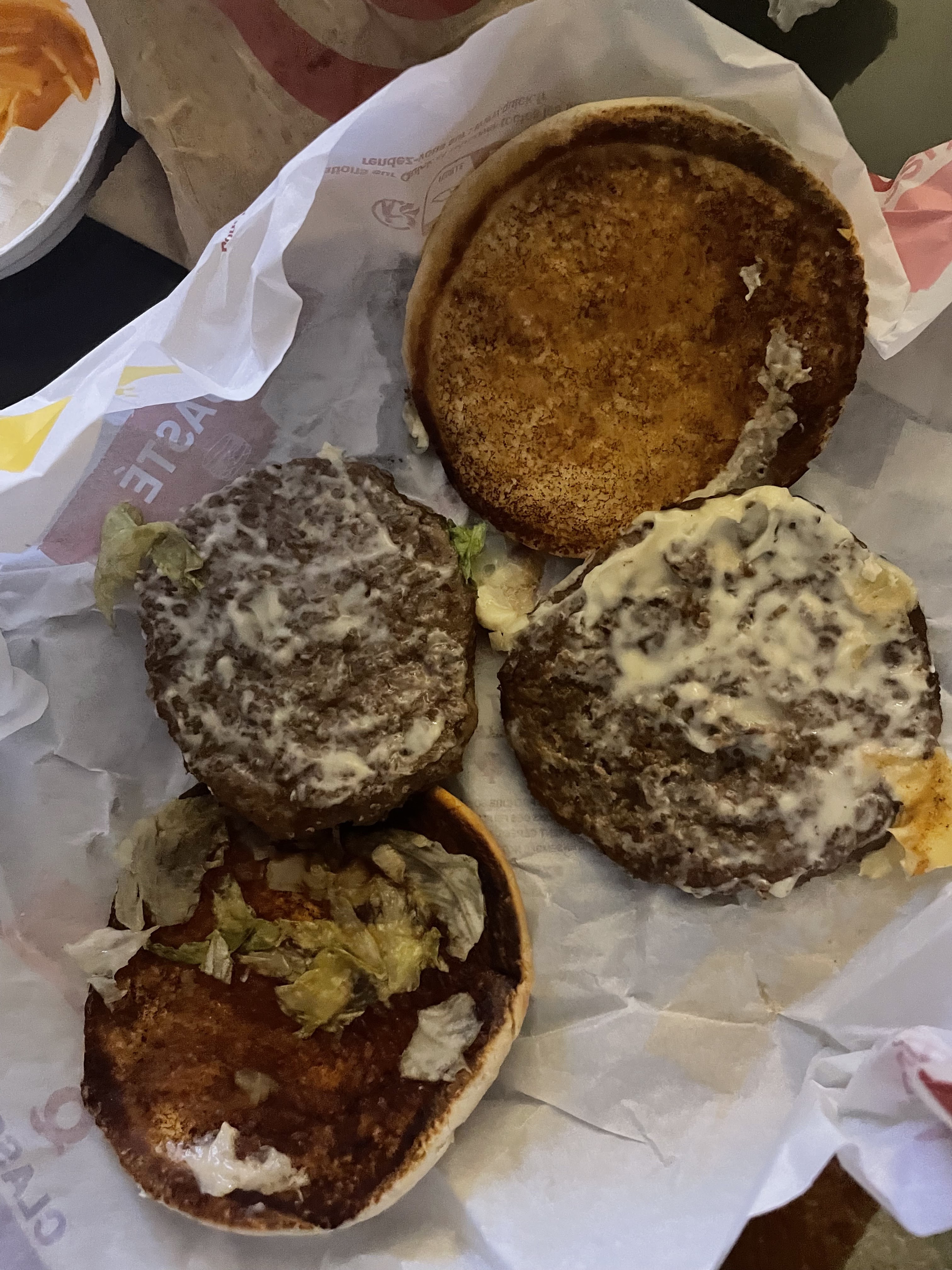 Commande en drive, 4 Burgers sur 5 servis sans sauce…. Se rendre compte de ca à la maison.👍