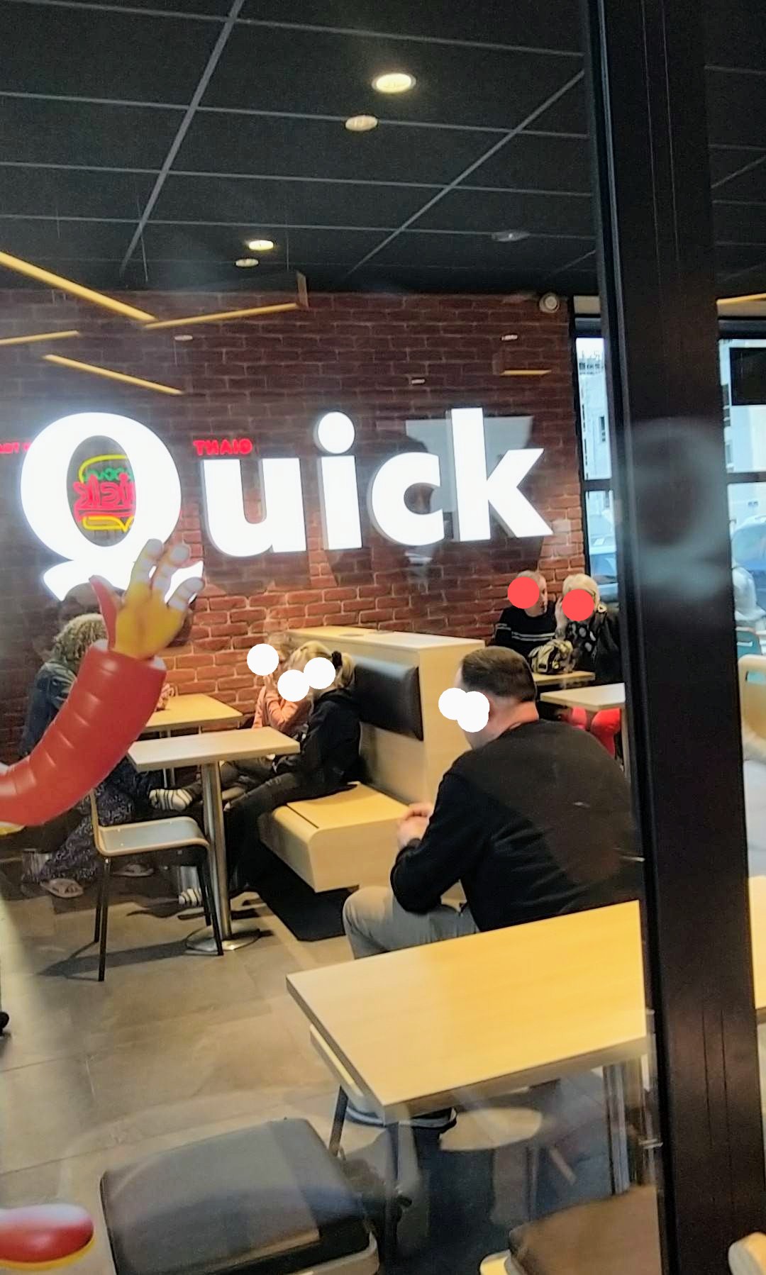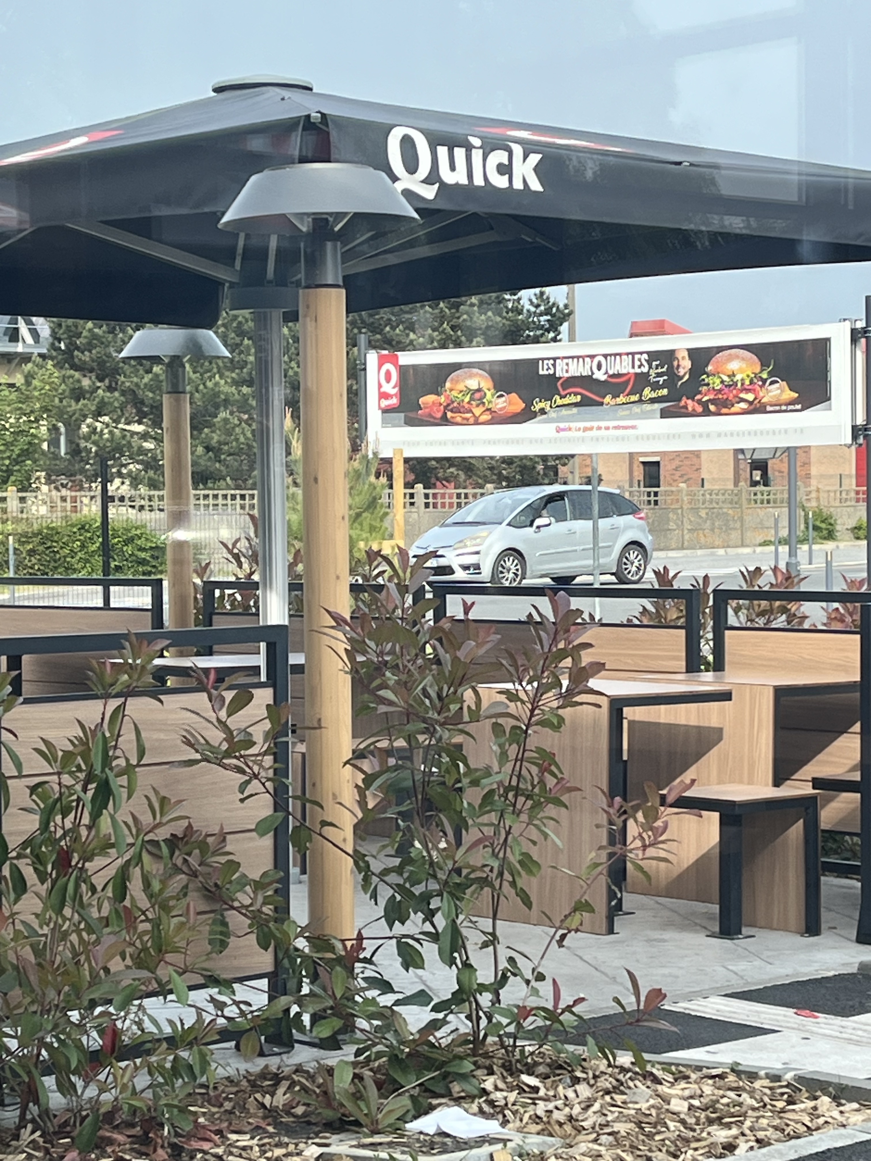 Impatient de retourner chez Quick, j’ai été refroidi une fois rentrer dans le restaurant. Bruyant, longue file d’attente pour récupérer son plateau, les gens qui ne ramassent pas leurs plateaux… pas très engageant. Et que dire du parking peu pratique surtout quand les SUV envahissent le parking en prenant deux places….