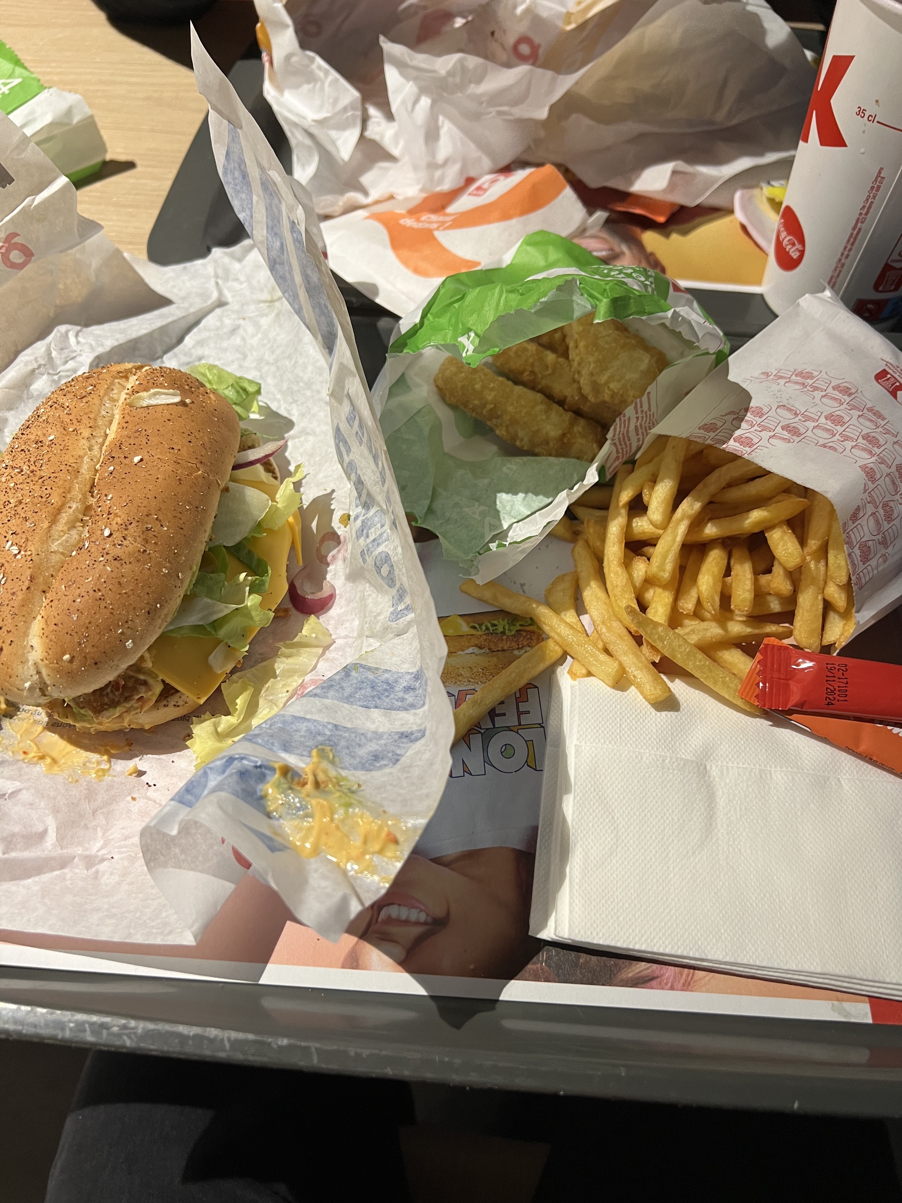 Il manquait 1 burger heureusement que j’ai vérifié avant de partir et les pains étaient sec et pas ouf un peu cher pour se qu’il m’on servi et surtout ne pas prendre de poulet il n’est pas cuit.