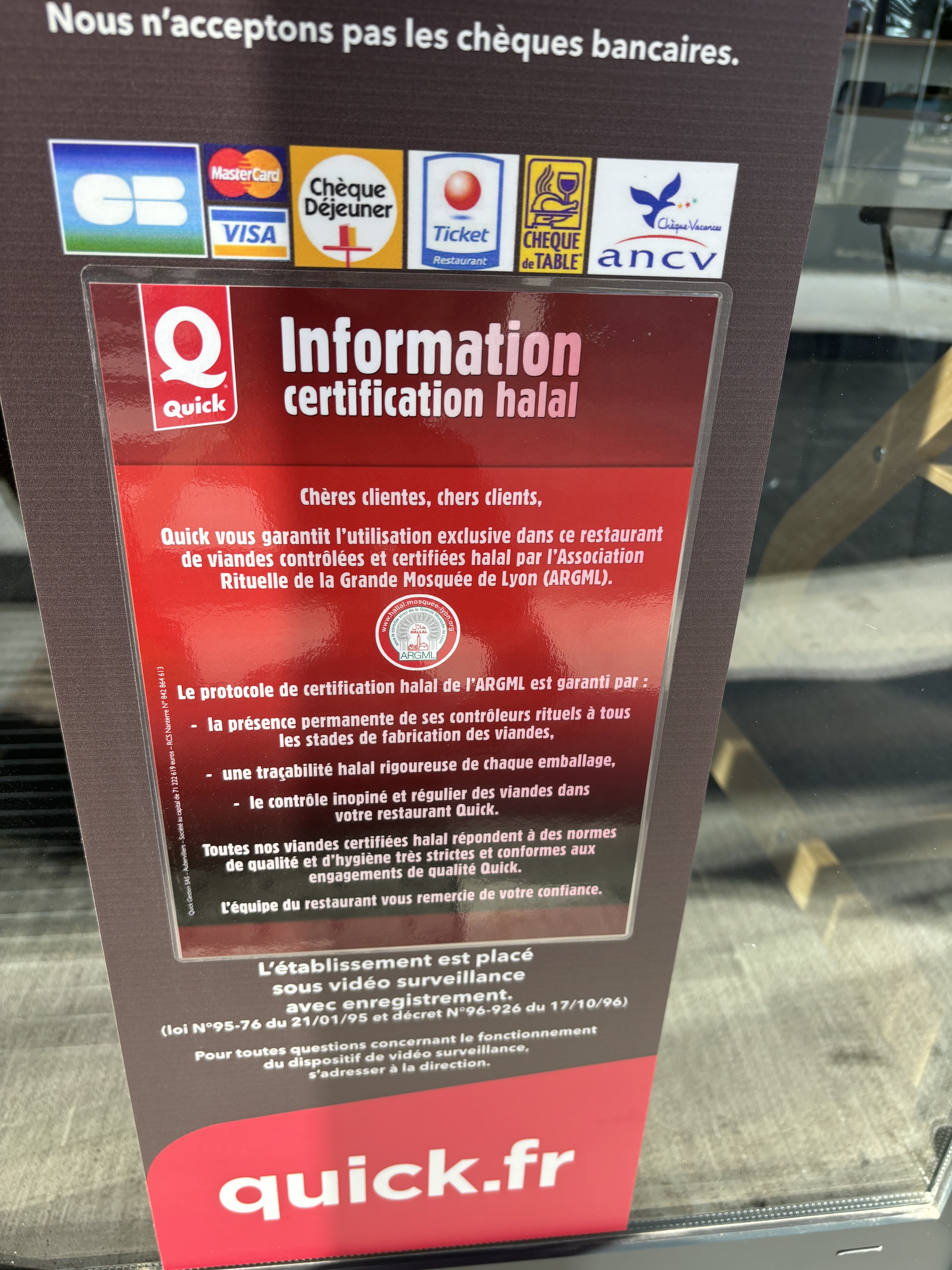 Vu que je suis catholique je ne mange pas halal je ne savais pas que TOUS les quick étaient halal donc j'irai ailleurs car pour moi du bacon de poulet c'est pas du bacon