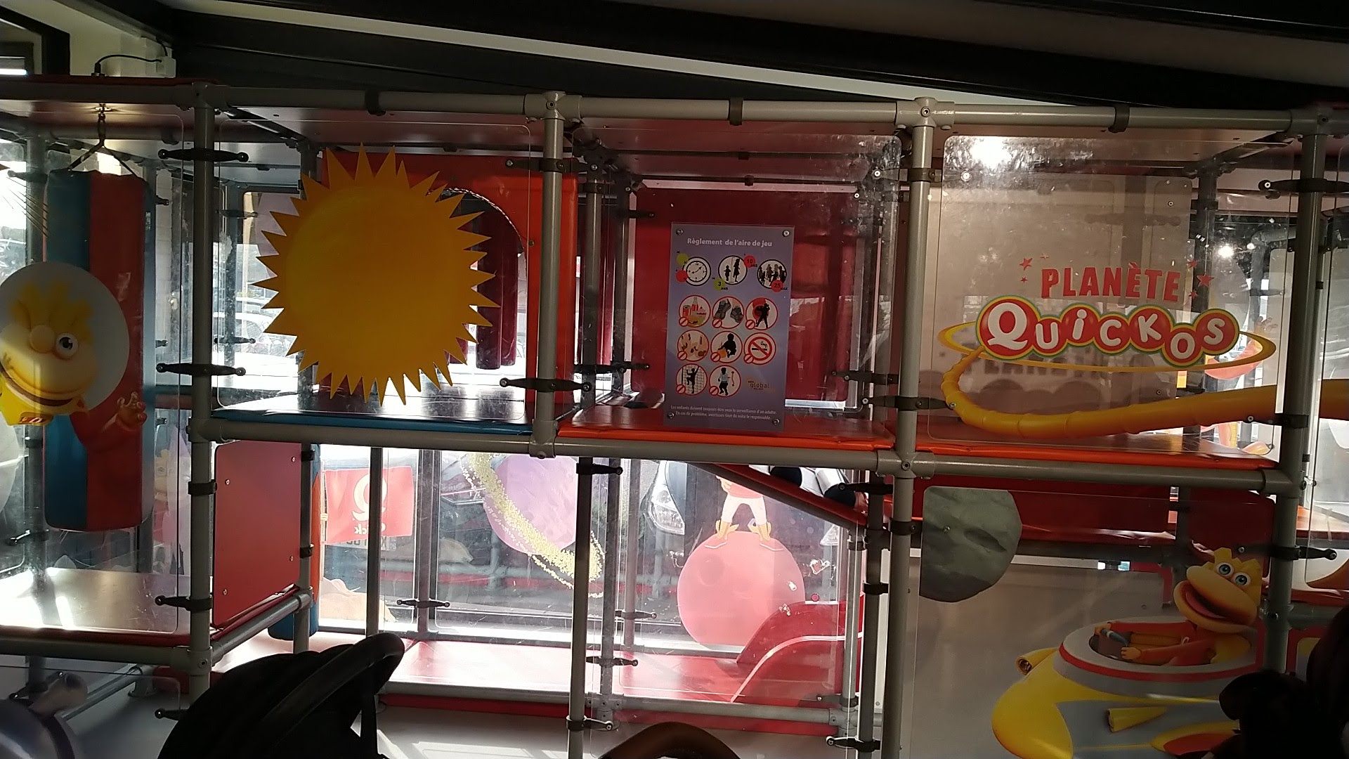 Enfin restauration rapide avec aire de jeux intérieur pour les bambins propre jusqu'au poubelle.