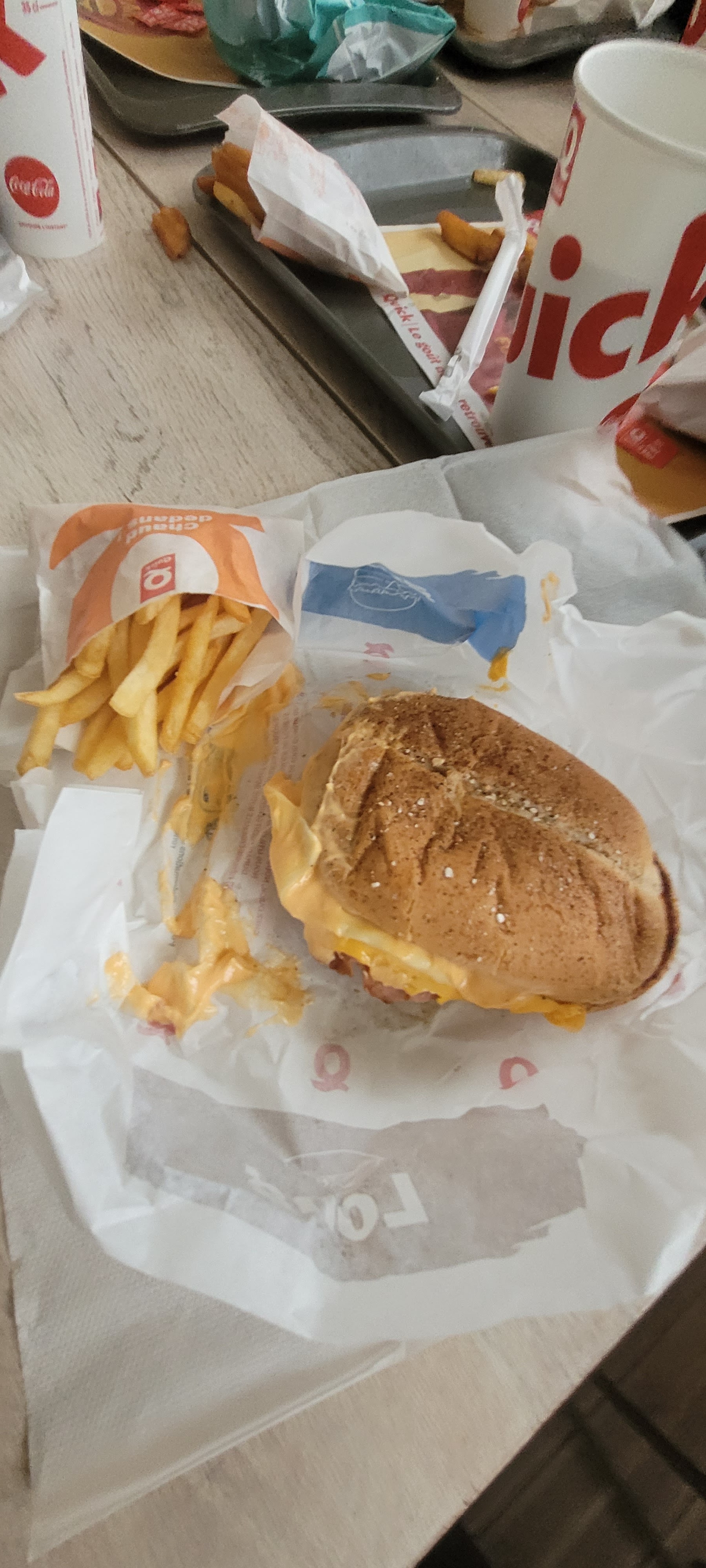 Le pire Quick que j’ai jamais vu mdrrr pendant qu’ils étaient entrain de faire ma commande les personnes sont partit en briefing et ils n’on pas fini ma commande , j’ai attendu très longtemps , capter qu’ils m’avais oublié et je suis aller toquer à une porte pendant leur petite réunion , j’ai dû certainement les déranger haha .