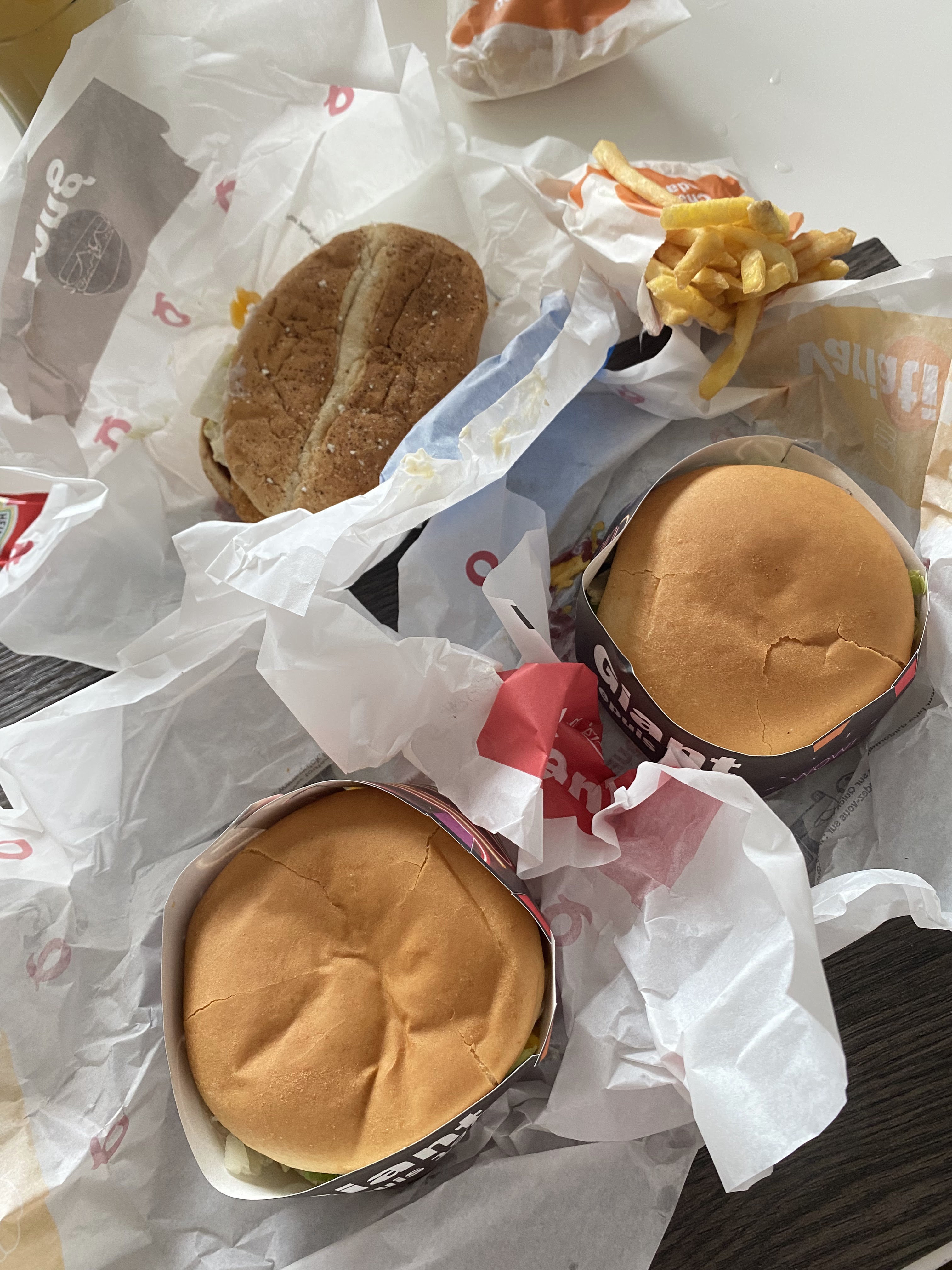 J’ai commandé deux giant max, mais il me semble que ce sont seulement des giants. Les pains d’hamburgers sont dure comme du béton, je ne sais pas pourquoi ils sont mangés sur le dessus, il y a peut-être des rats qui les ont grignoté. Je suis très déçu et n’y remettrais plus jamais les pieds.