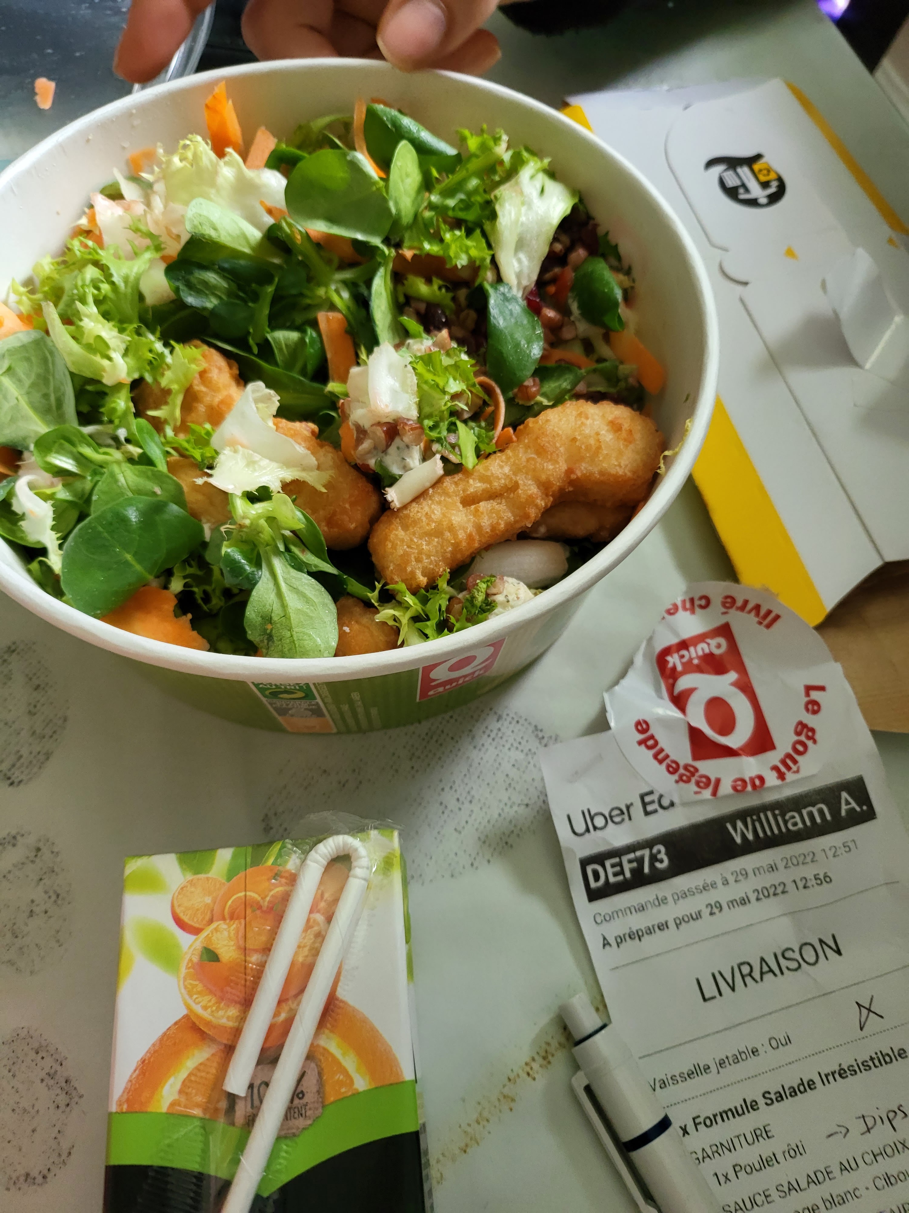 Tu commandes sur uber eats ,tu attends sagement ta commande et comme par magie ,ta commande disparaît. Pourquoi ? C'est un mystère, une équation a 8 chiffres. Une vraie bandes d'incapables ce Quick..