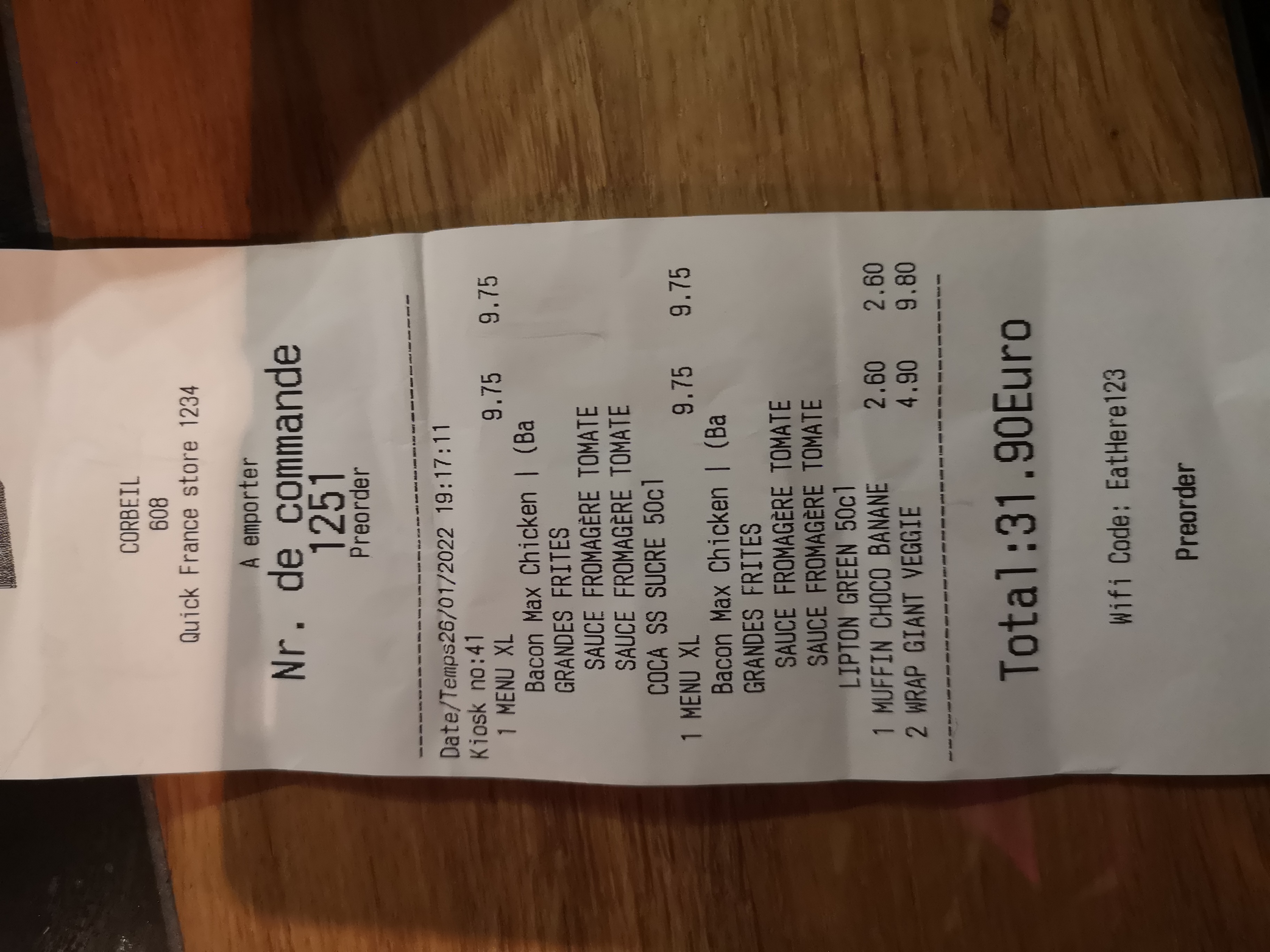 Bonjour Je me suis présenté aujourd'hui aux Quick de Corbeil Essonnes a 12h30, je suis passé à la borne intérieur, la machine ne m'a pas remis le ticket, je suis allé aux comptoir, je dit que la borne ne m'a pas donné de ticket et que j'avais validé le paiement, une femme voilée la pris pour elle et ma agressé verbalement ainsi qu'un homme, je lui et dit que je m'adresser aux comptoir, et le personnel du Quick a pris la défense de la femme ainsi que le Mr j'étais avec mes deux enfants 7ans et 9 ans ils sont été choqué et sur tout le jeune salarié du Quick qui m'a tutoyer tu va rien faire du tout, ils ma repousser avec sont bras a plusieurs reprises, je trouve ça honteux de la par de Quick. Je suis également maghrébin, je suis très respectueux envers les femmes et les hommes qui m'entoure. J'ai également déposé un commentaire la semaine dernière, ils me manqué beaucoup de chose dans la commande, y'a vraiment un manque de sérieux dans ce Quick. Préparation 684 Cordialement
