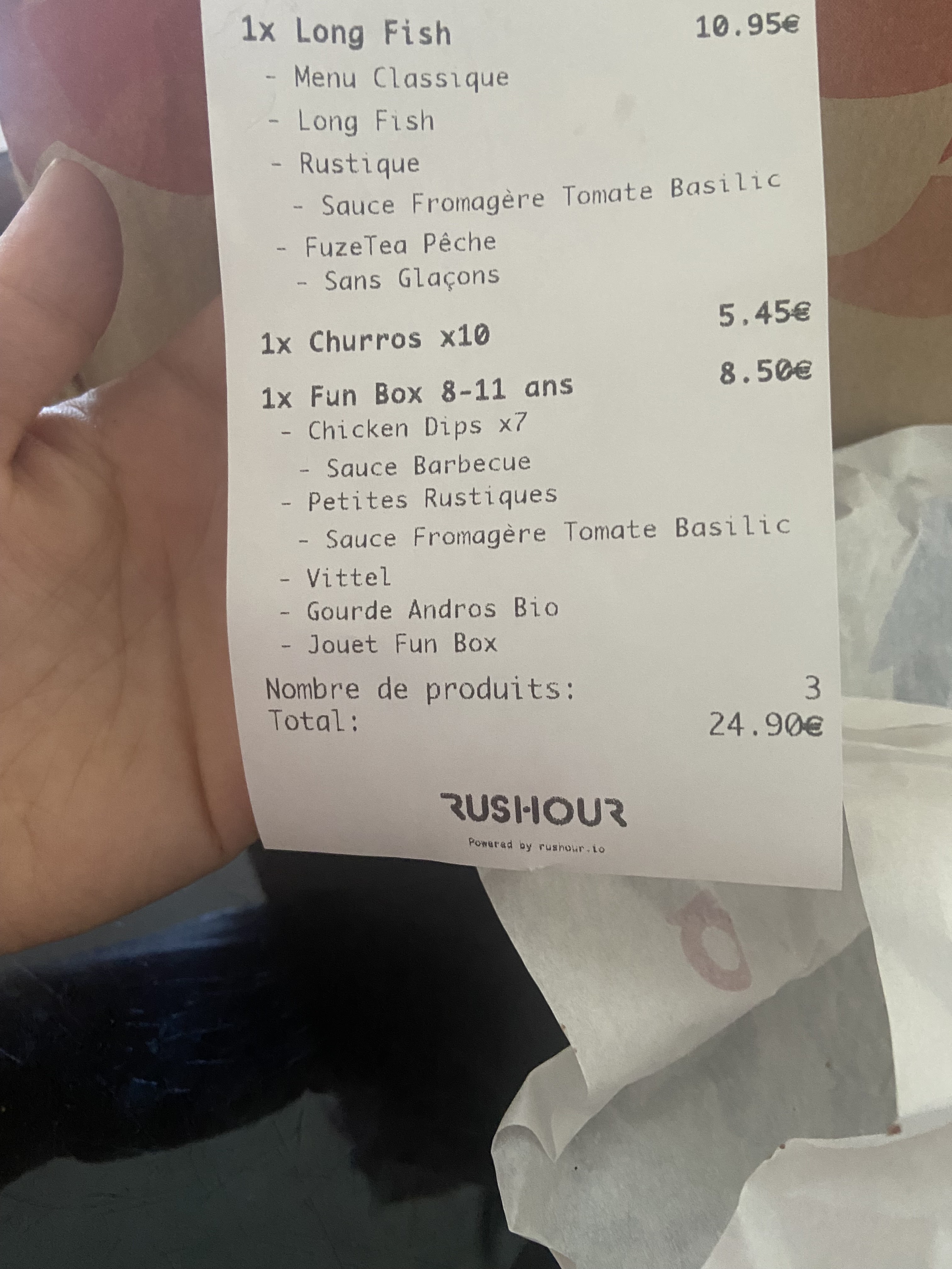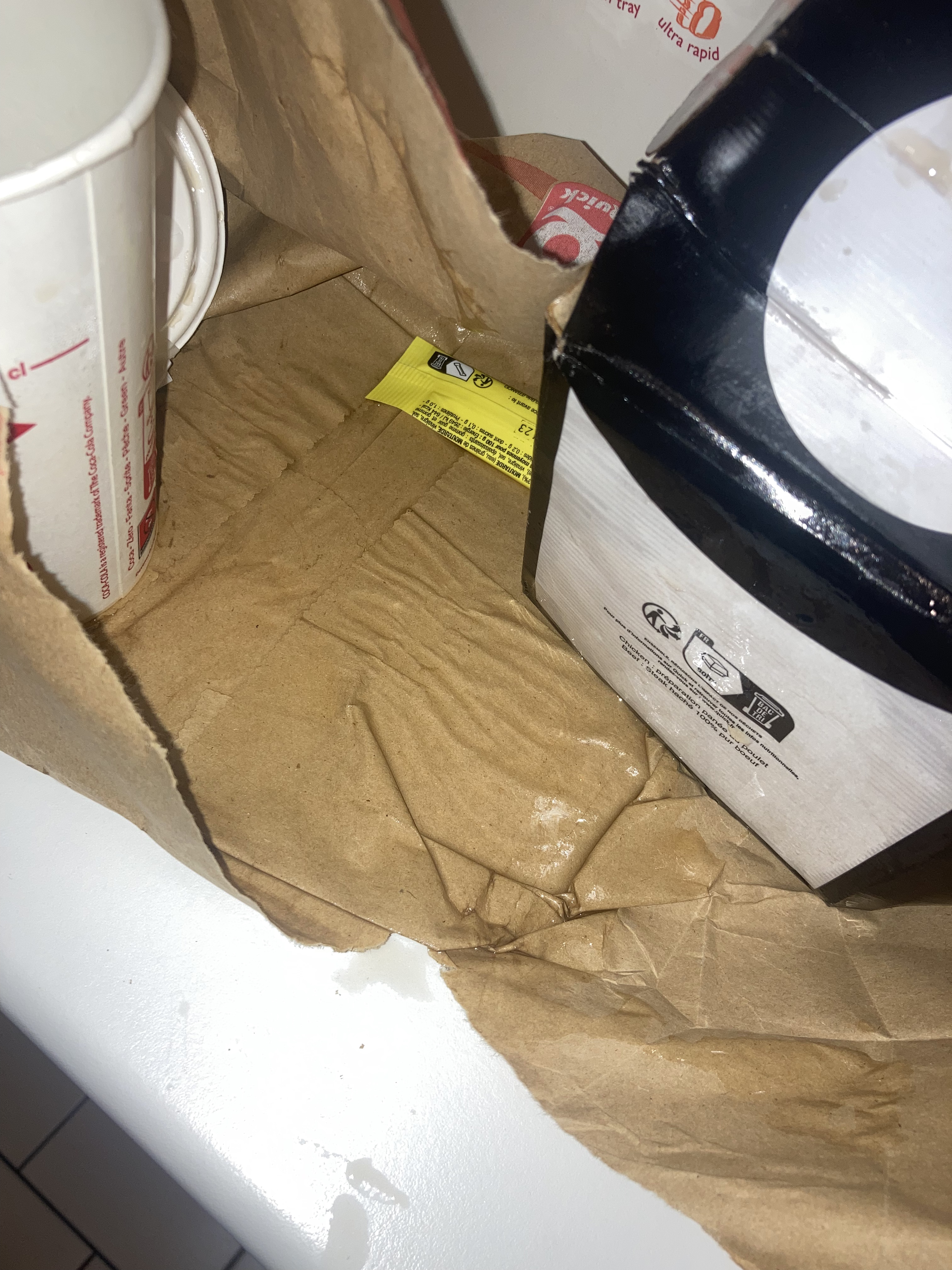 Commande à 48 balles, sans parler des boissons renversées, même pas un seul sachet de sauce. Je sais pas, quand on commande à ce prix là, faites au moins un petit effort.