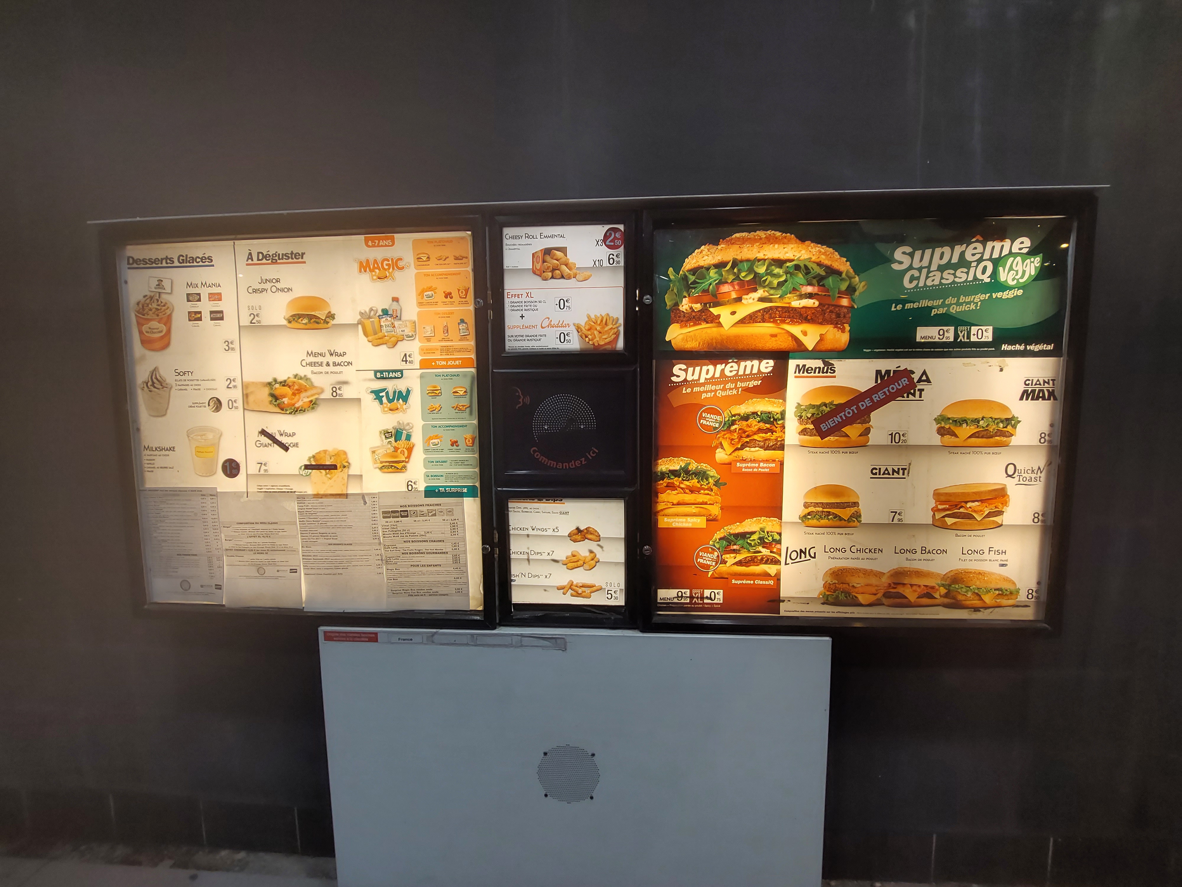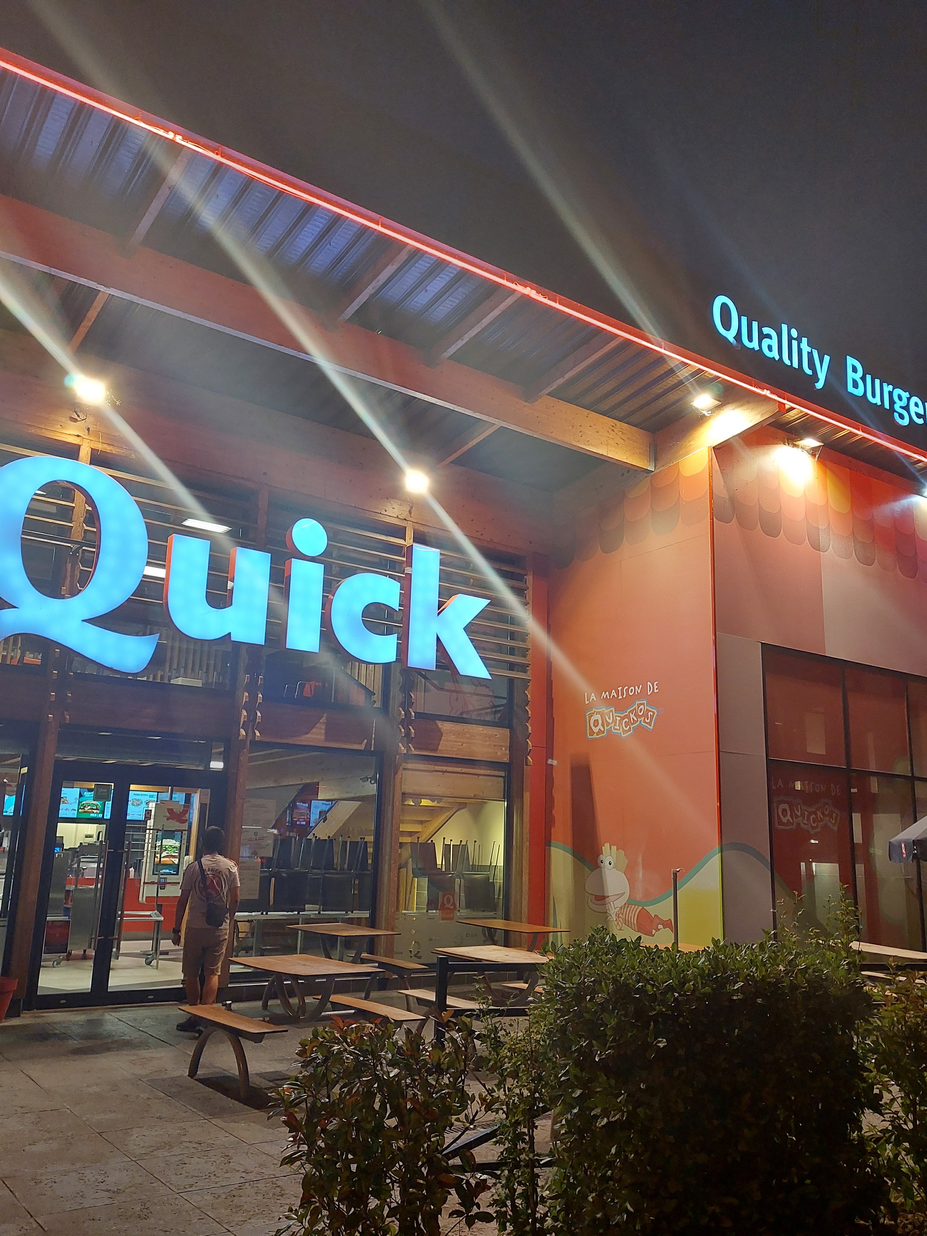 Ça fait plaisir de manger Quick, il en reste peu en France. La recette du Long bacon avec sa sauce, trop bonne. Dommage : les sandwichs étaient plus froids que tièdes, il manquait un sandwich et des frites fraîches bof.