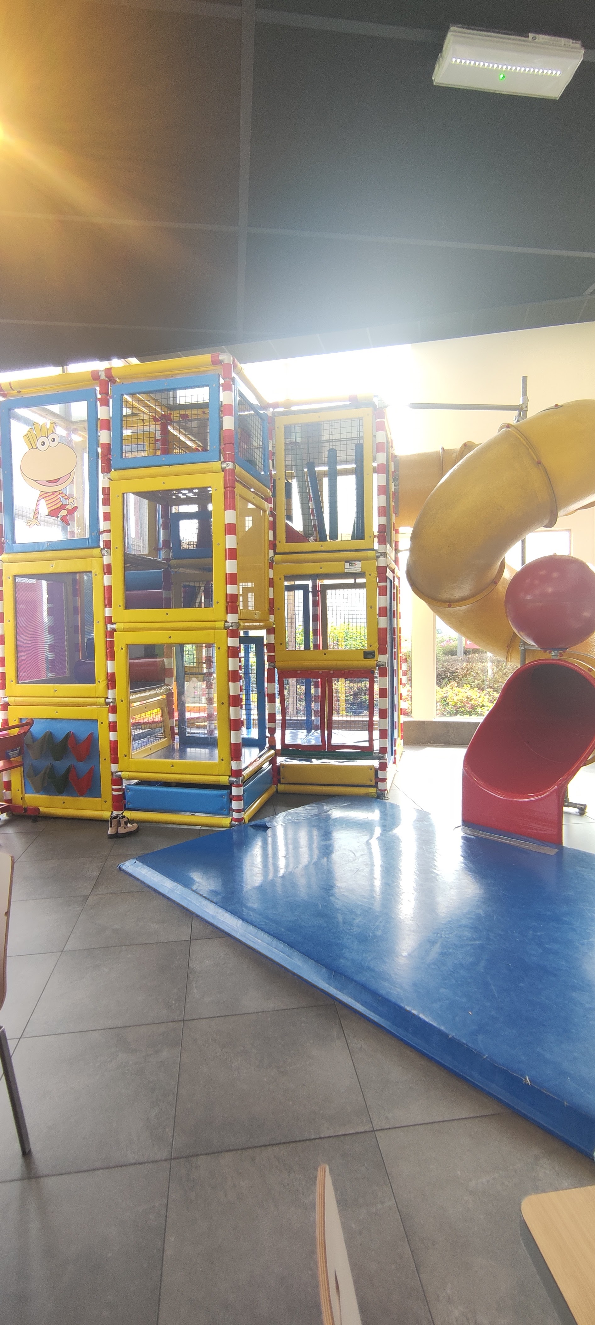 Ce restaurant est calme et n'a pas la même affluence que son concurrent. Néanmoins cela reste très agréable pour l'ambiance. Les sandwiches restent industriels sans délire gustatif. Il y a deux structures de jeu selon l'âge des enfants et c'est sécurisant. Les tables ne sont pas toujours reluisantes et un petit effort sur ce point ne serait pas du luxe. Concernant le l'accueil, ça manque un peu de sourire mais lorsque j'en fais un, j'en ai en retour. Soyez le changement que vous voulez voir dans le monde.