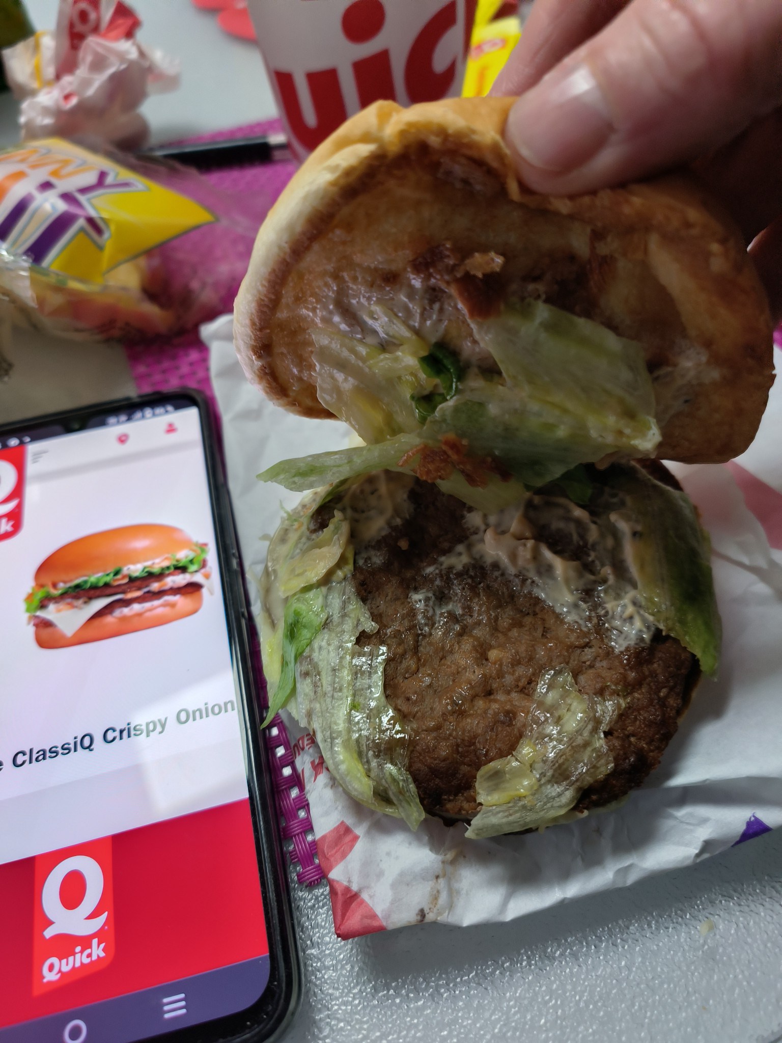 Un moment que je n étais pas allée à Quick J ai trouvé les burger moins bons qu avant. Une odeur forte à l entree du lieu. Pas de nourriture.