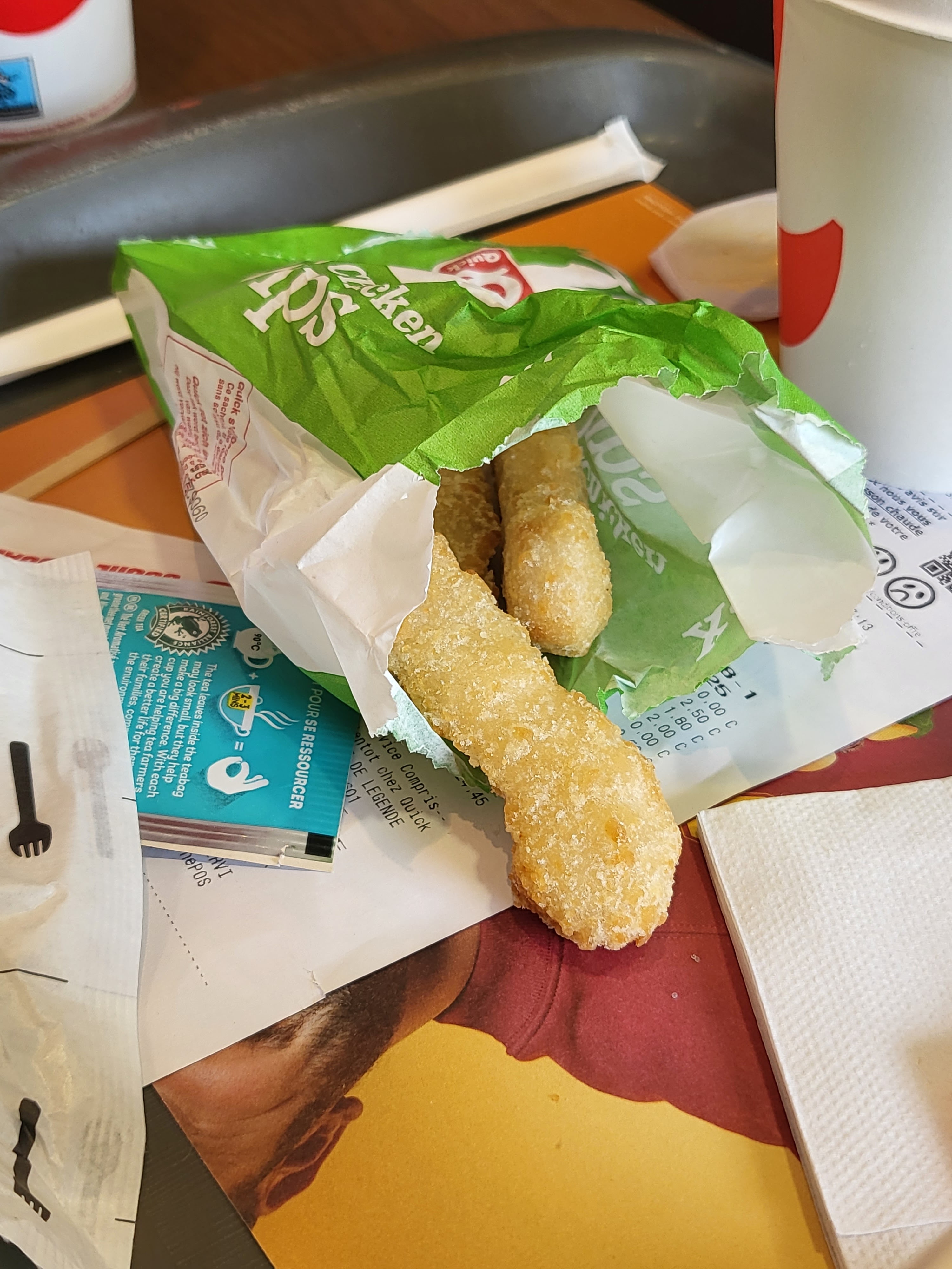 Je ne laisse presque jamais d'avis mais alors là, tellement fâchée que j'y suis obligée Rien à dire pour la commande qui a été préparé rapidement mais par contre, ON EN PARLE DE LA QUANTITÉ DE FRITES, c'est du jamais vu, même dans une petite frite, il n'y a presque rien. Vu le prix du menue je trouve ça aberrant, au final c'est comme si je n'avais rien mangé...