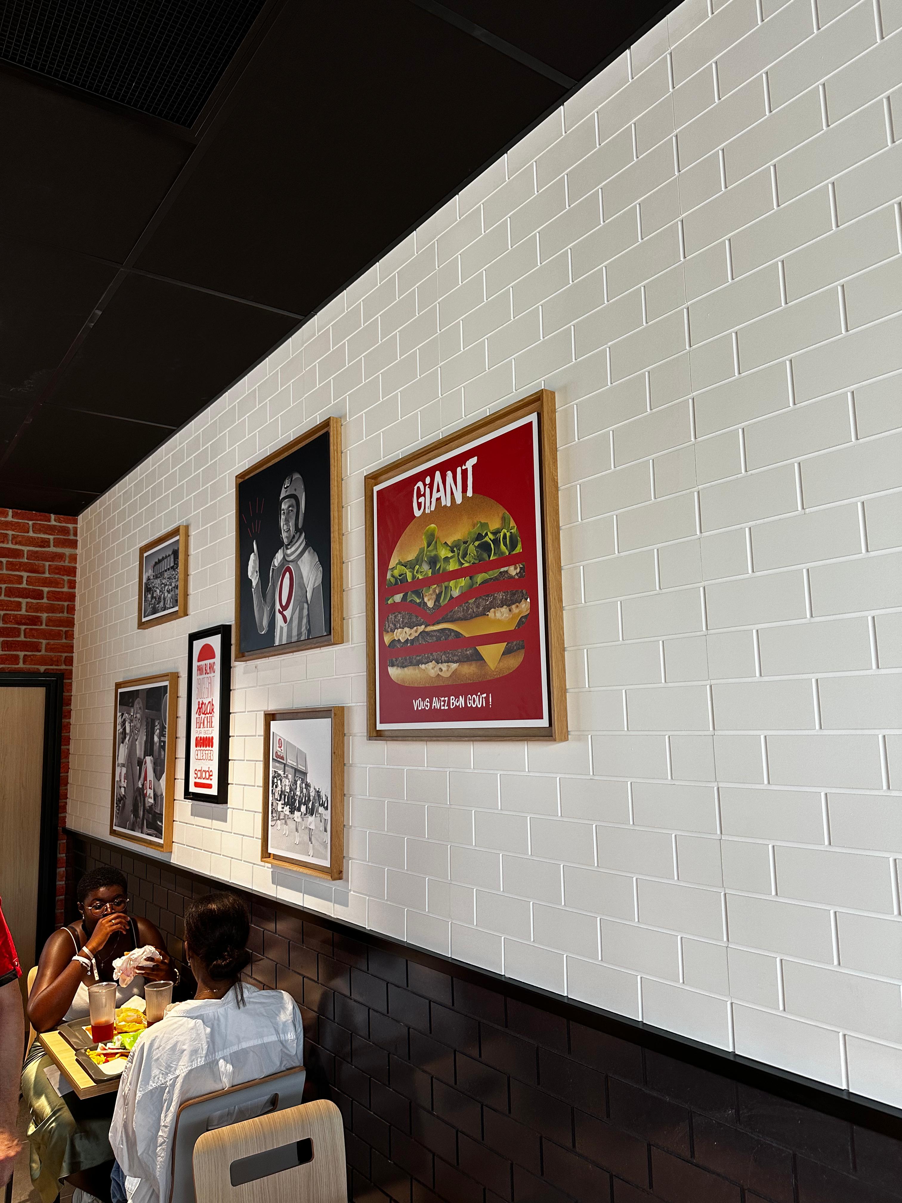 Mais alors quelle déception ! J'adore l'enseigne mais là c'est la cata ! Pour commander sur les bornes il faut essayer de se frayer un chemin parmi les personnes qui attendent leur commande. C'est très compliqué. Et quand on a fini on gêne les autres personnes qui veulent aller sur les bornes. C'est très mal étudié. J'ai été servi assez vite. Mais une fois de plus... Où sont les sandwich qu'on nous survent à la télévision et sur tous les abris de bus ? Il n'y en a pas ! Comme lors de ma dernière expérience à Clermont-Ferrand ! Même plus de quick'ntoast ! Et une offre réduite car le Quick est tout petit ? Quand j'ai vu mon long bacon, j'ai cru qu'il y vait une erreur ! Je suis retourné au comptoir mais on m'a dit que c'est bien le bon ! Les sandwich ont rétréci depuis la réouverture de Quick qui en plus aplati ses sandwich sans les anciennes boites de presentation. Mais non ! En plus ils ne sont pas savoureux mais très secs ! Même le mega Giant est rikiki ! Mais il se passe quoi ? Et en plus ça m'a coûté une blinde ! C'est très très très compliqué de trouver de la place pour s'asseoir. Le Quick a de la gueule vu de la galerie mais c'est tout. J'étais tellement impatient ! Moi qui suis un fervent défenseur de l'enseigne... Je suis déçu. Je me suis demandé si j'étais vraiment au bon endroit ! Par contre le personnel est assez aimable. Mais les clients ont oublié qu'on débarrasse soi même son plateau. C'était la folie en arrivant, il y avait des plateux non débarrassés de partout. Heureusement le personnel est venu à la rescousse mais sans réelle efficacité avec le monde de partout. En même temps on est habitué à trouver des poubelles chez Quick . Mais là je n'ai vu que des portes plateaux qui ne parlent pas trop. C'est un peu déroutant. Monsieur Quick je te kiffe mais là il y a un petit souci dans ce restaurant ! Pourquoi avoir réouvert un Quick dans ces conditions ? Je retourne à Bron dès que possible les amis.