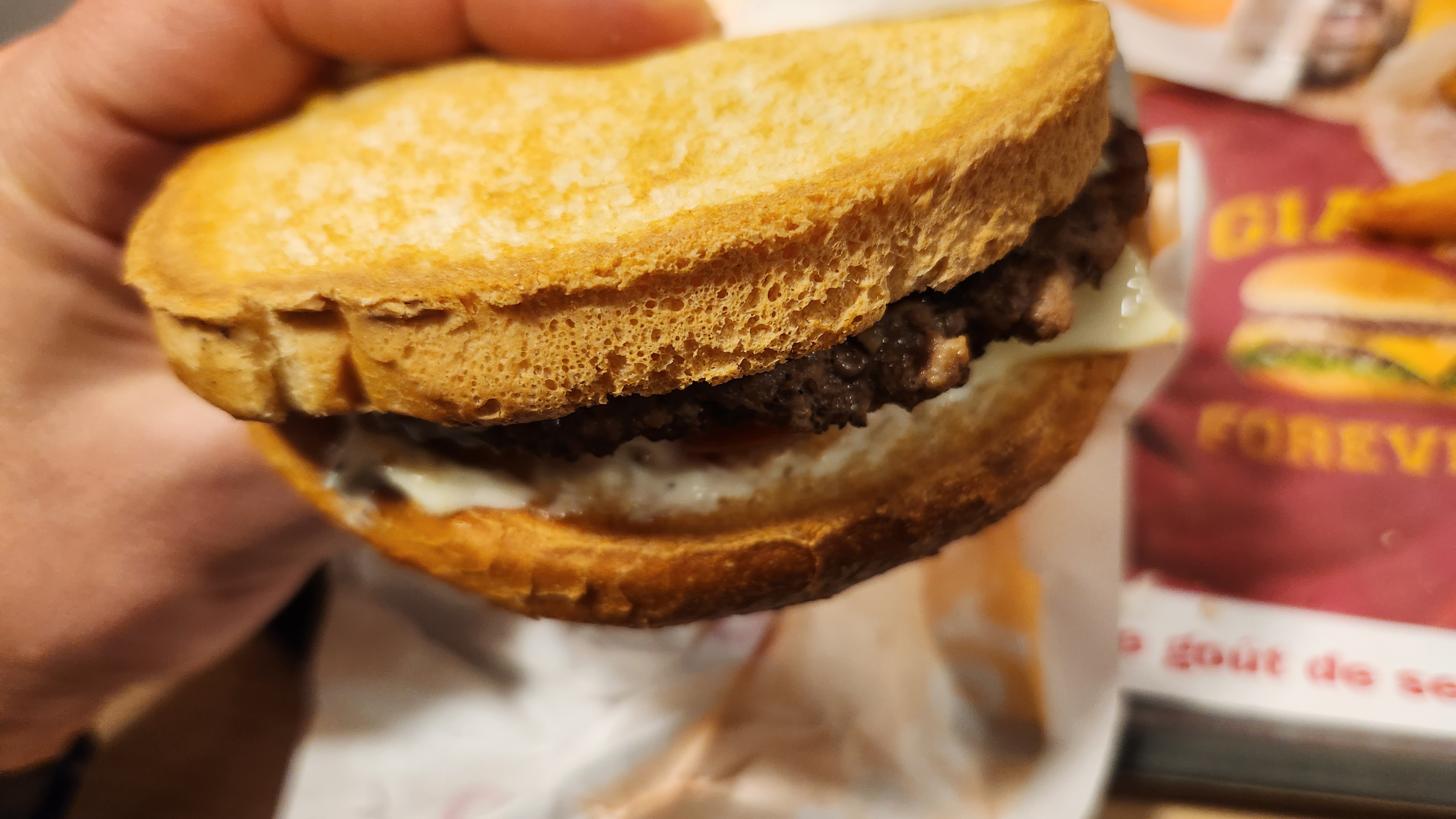 Nous avons été très bien reçu et servi rapidement. Nous avons commandé un menu Giant et un menu Quick N'toast. Menu Giant parfait, le Giant était bon, les frites également et la boisson Ok. Pour le menu Quick N'toast, le pain aurait mérité d'être un peu plus toasté et le bacon un peu plus grillé car s'agissant d'un faux bacon, il est indispensable de lui donner un peu de croustillant. Attention ! Sans climatisation, comme c'était le cas, impossible de déjeuner à l'intérieur. J'ai une pensée pour l'équipe pour qui cela doit être extrêmement difficile.