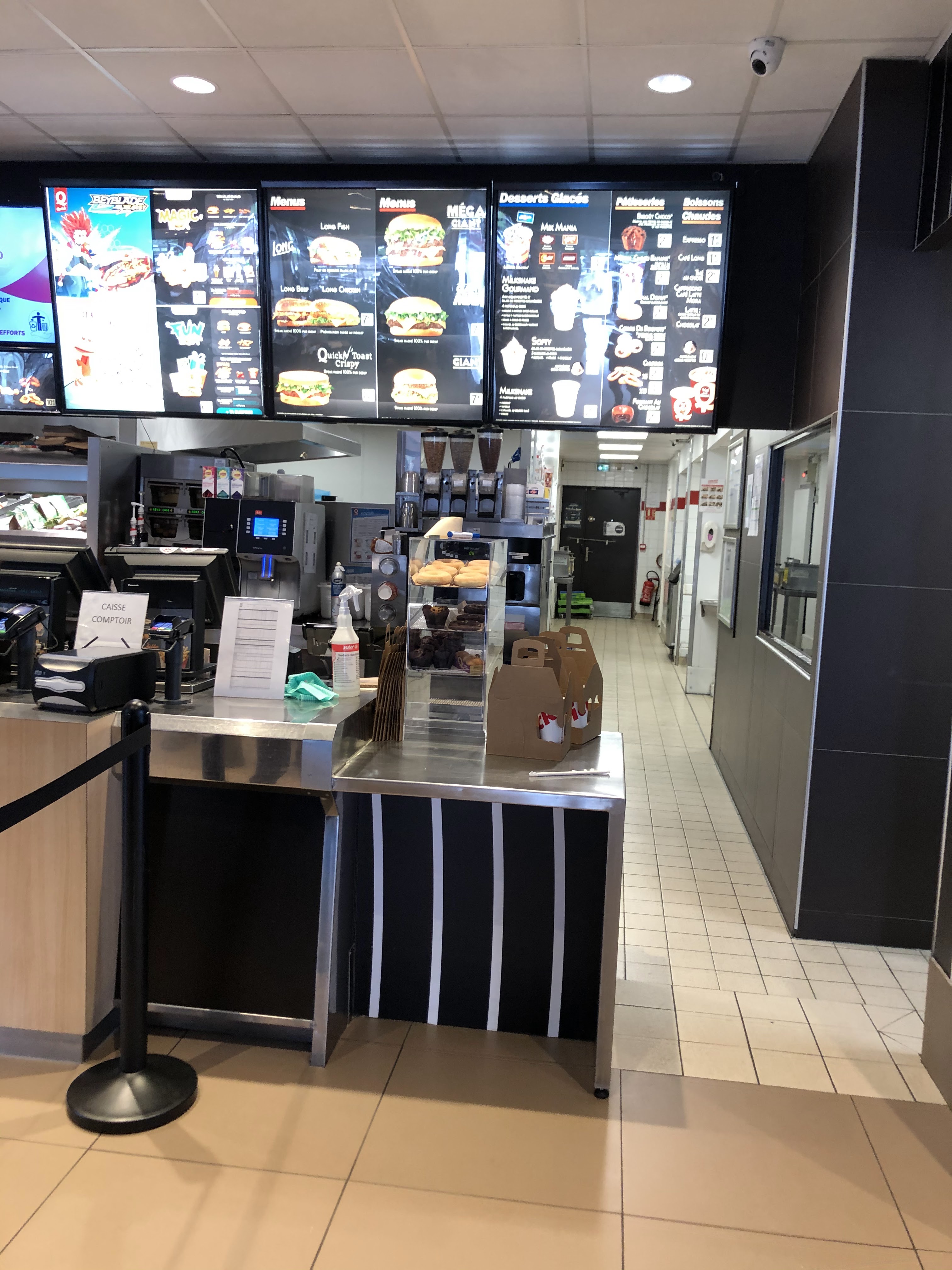 Personnel souriant polie et agréable la commande a été validé est servi de suite je précise l’heure il était 14 heures😊propreté correct au sol les tables sont nettoyés systématiquement dès qu’un client sort. Un vigile est à l’entrée c’est sécurisant.