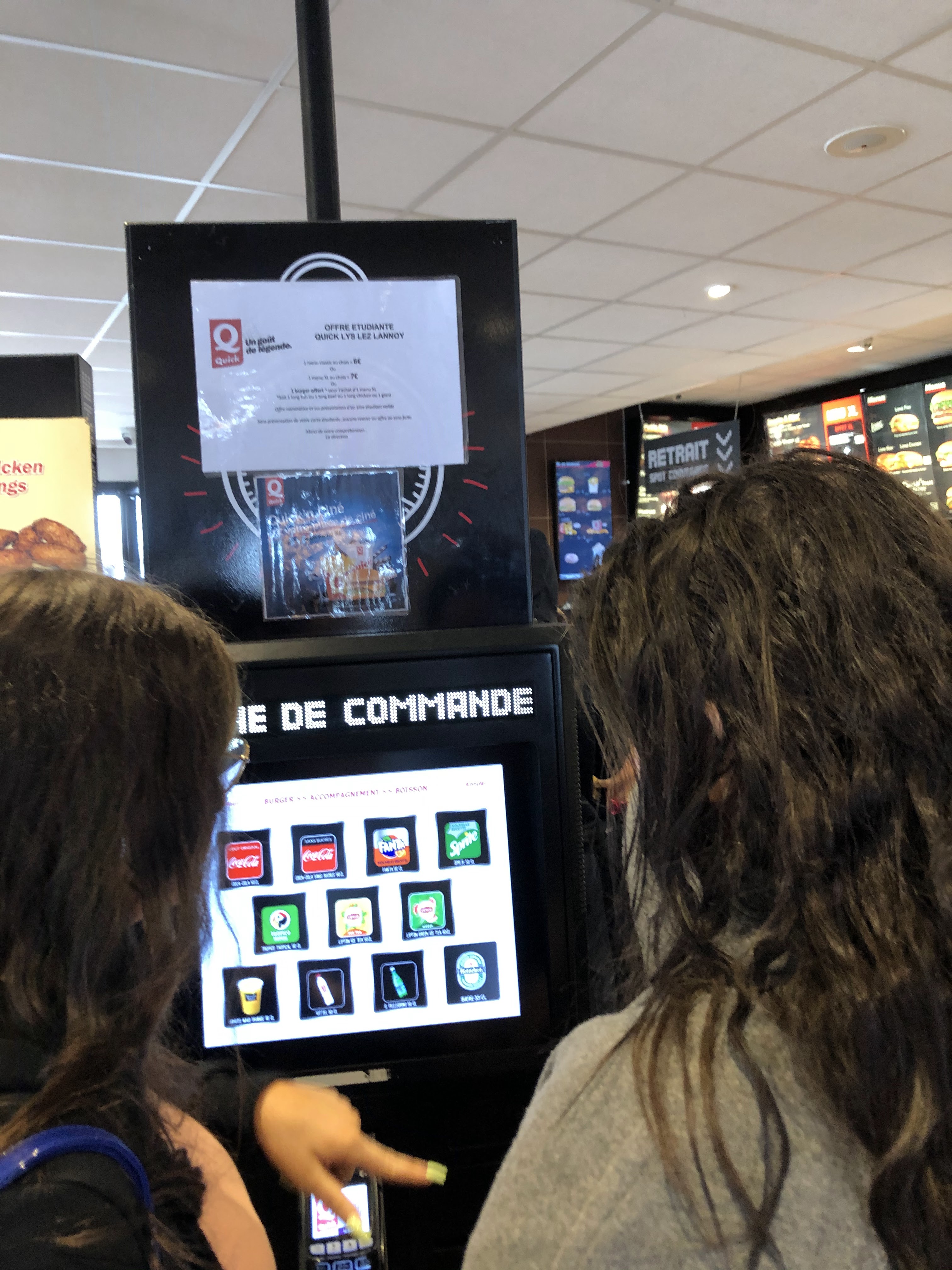 Il y a très peu de bornes disponible pour passer commandes. Il y a des opérations mais c’est uniquement pour les étudiants pour les autres c’est prix fort! Le parking est vite bondé et finalement on se gare souvent sur le parking d’Auchan ou de gür. Ils ont changé la recette du Quick and toast et ça c’est vraiment dommage c’était le seul avantage à aller chez Quick ! Enfin les frites étaient pas super bien cuites. Pour le reste le restaurant est propre et relativement accueillant.