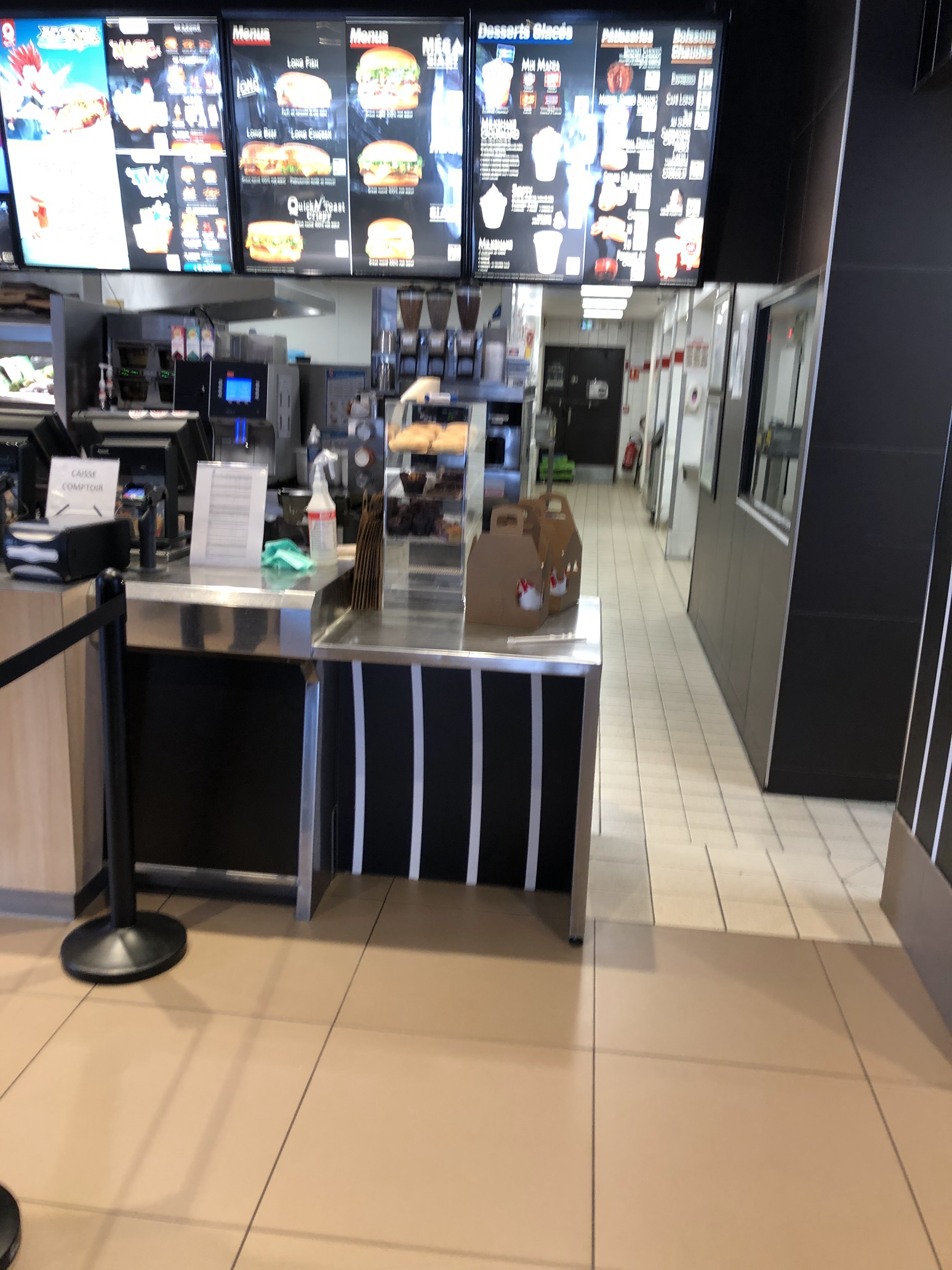 Pas de possibilité de changer les détails de la glace à la borne ( topping). Refus aussi des employés alors que dans les autres Quick c est toujours accepté. Résultat une glace à la poubelle. Infrastructure mal nettoyee. Si vous voulez un Quick dans le coin, allez à Roubaix pas ici