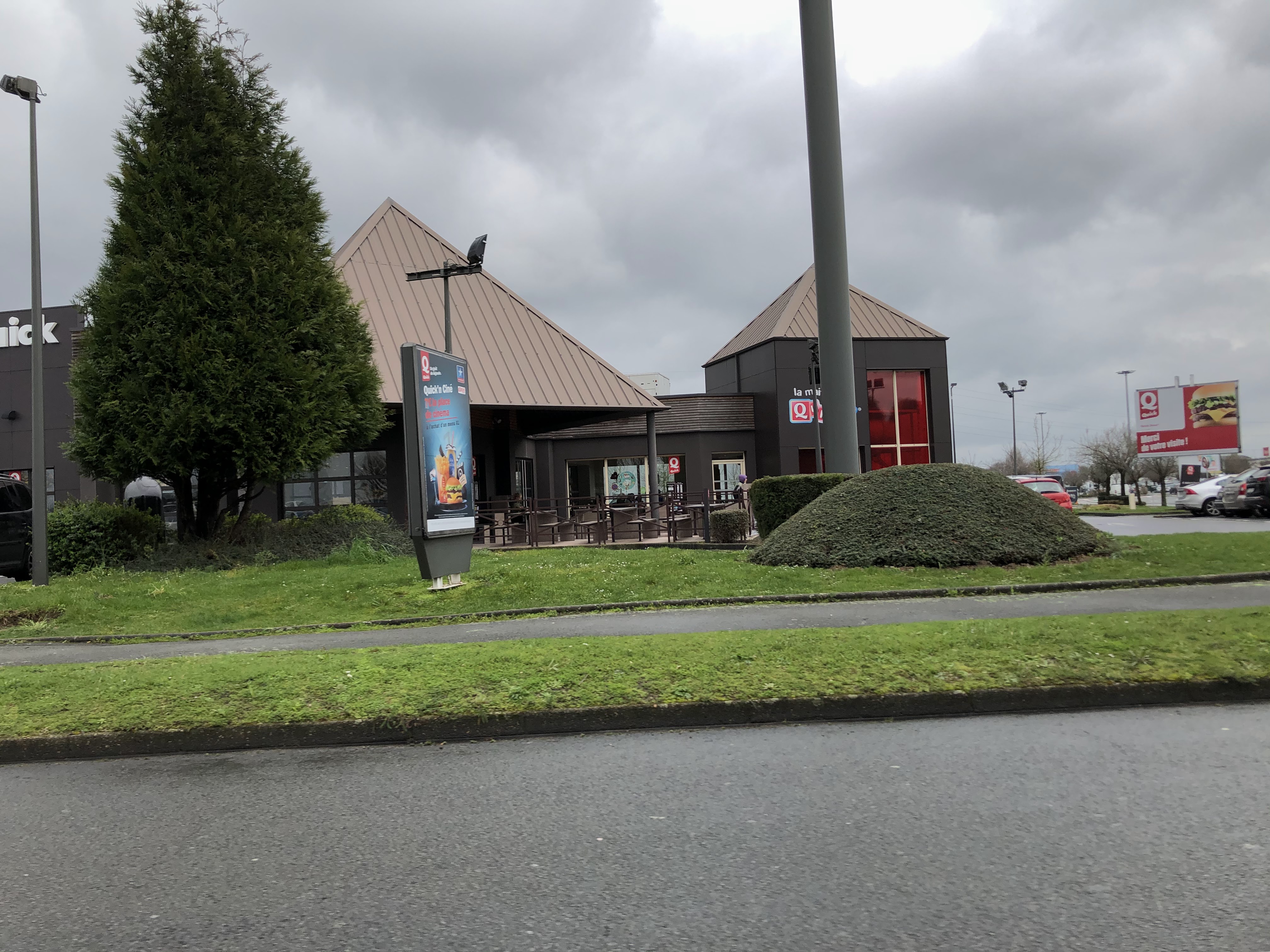Quick qui s'inscrit dans la liste des Quick Halal, le drive est un peu mal foutu juste après avoir passé commande faite attention il y a un angle de trottoir peu visible, sinon le reste est cool