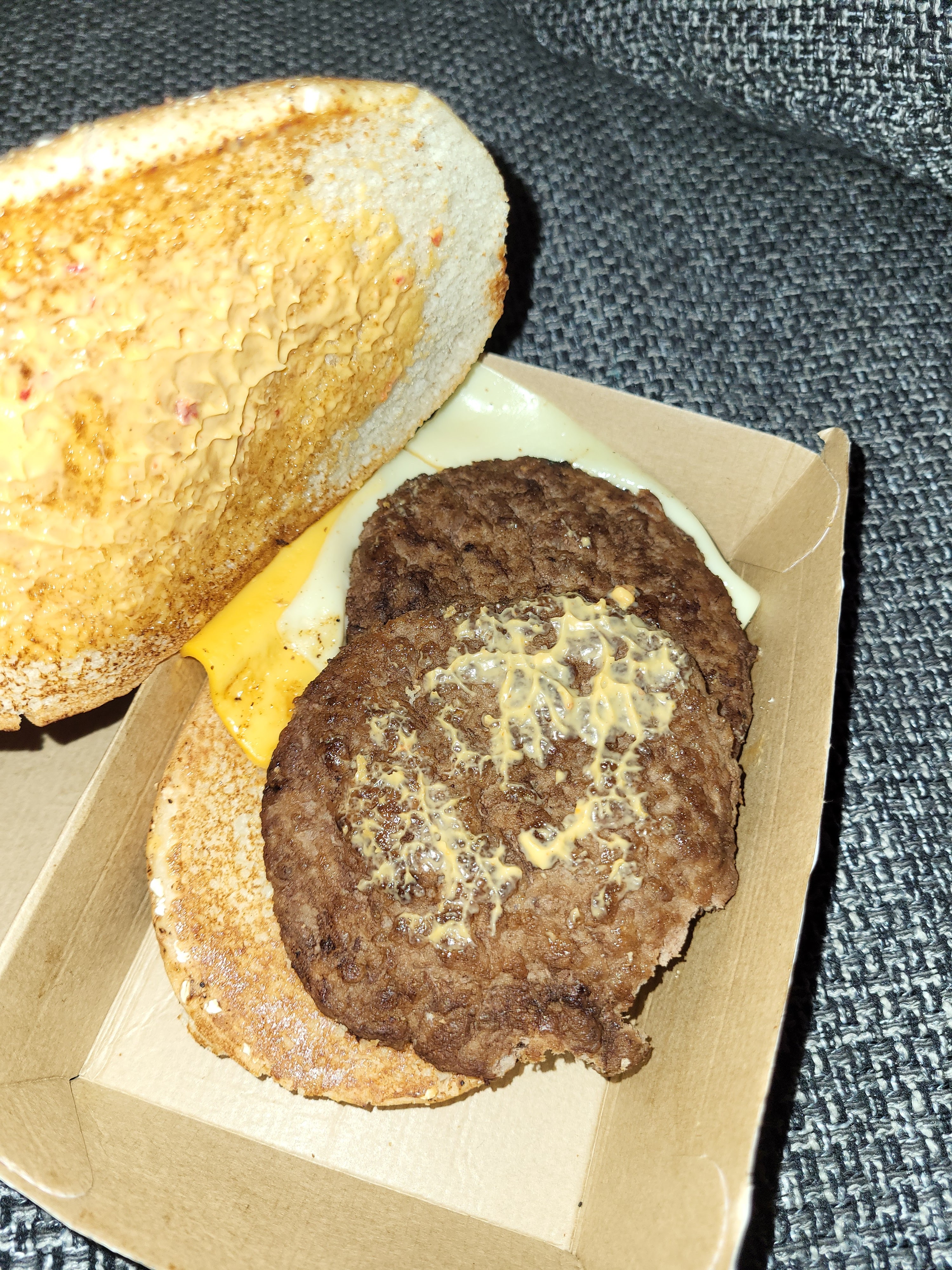 HONTEUX on a commandé sur deliveroo, il manque une sauce et surtout un des deux giant max n’a que la viande qui est CARBONISÉE. Regardez la photo. Résultat soirée gâchée et 45euros en l’air. Plus jamais. Sans parler qu’on a pris une grosse box et qu’on a 3 cheesy au lieu de 6 êtes wings CARBONISÉS AUSSI. En tant que grande fane de Quick je suis écœurée