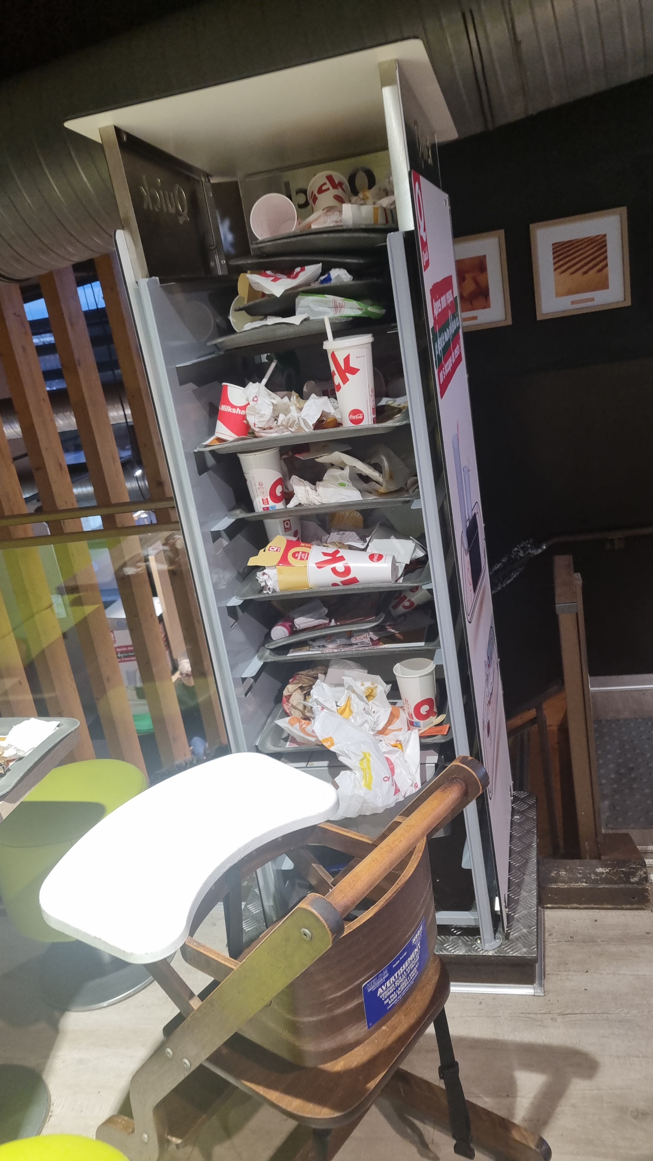 Je n'ai jamais vu un fast food si sale. 🤢Impossible d'avoir le courage de commander. Dès la porte d'entrée, 19h30 les plateaux qui débordent avec des restes et des déchets partout nous accueillent. J'adore Quick, mais là: Immonde. A éviter!!!!!