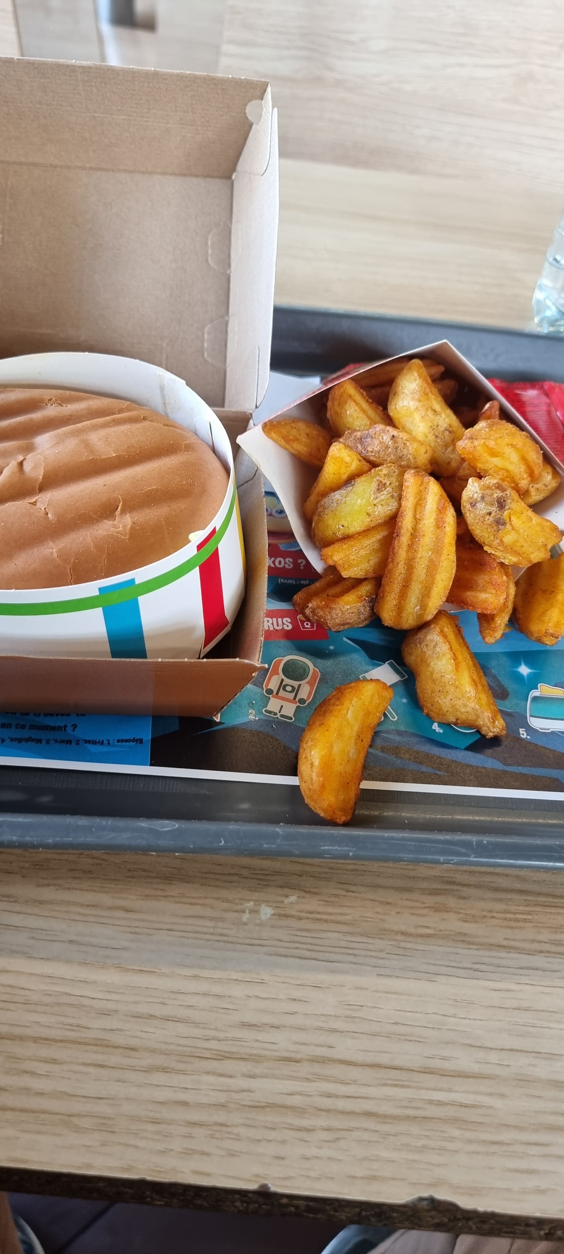 Ventes à emporter vraiment pas au top. Verre remplie à moitié. Pas de serviettes etc cc. Frite petite au lieu de grande . Vraiment pas cool