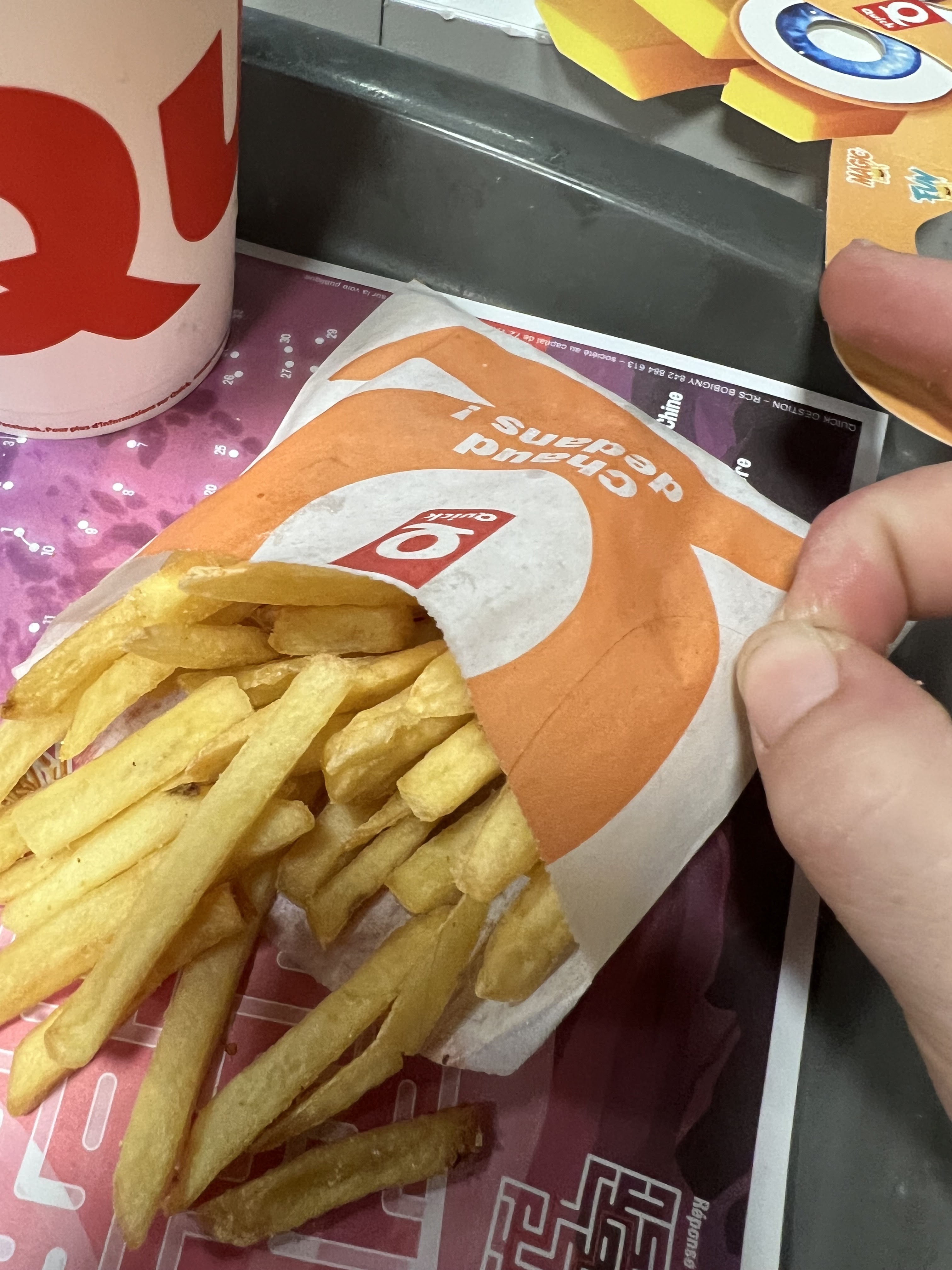 C’est peut-être le dernier Quick restant, je suis contente d’habiter à proximité prcq c’est bon quand même. Parfois ils se trompent dans les commandes et rajoutent de la nourriture, c’est dommage pour eux mais ça me va 🤣