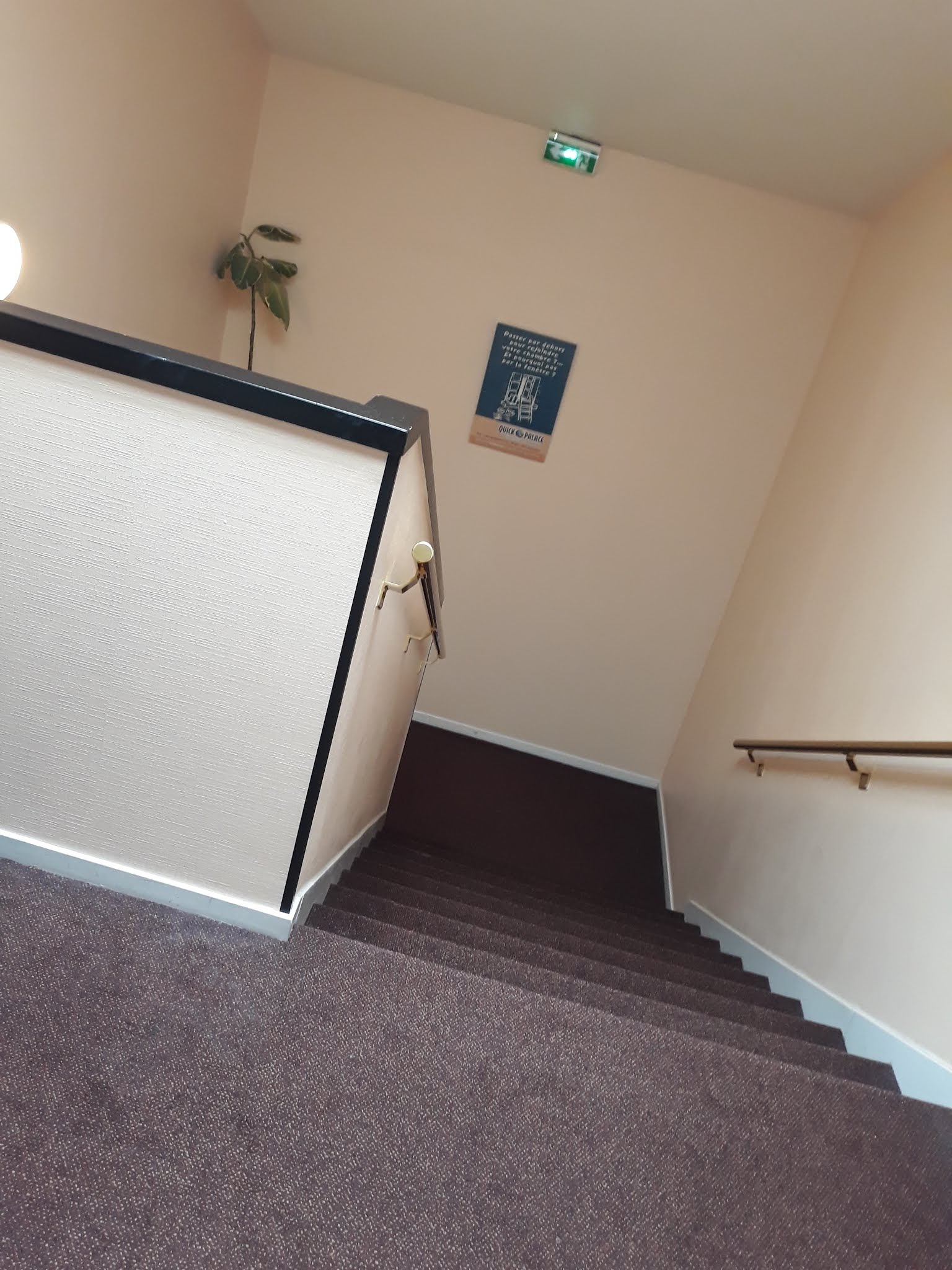 Mauvaise expérience du 14 décembre 2023. Petit-déjeuner 10 sur 10 Chambre n°8, ou plutôt Local n°8 tant cette pièce ne mérite pas l'appellation chambre : ZERO POINTÉ : moquette hyper tachée dégageant une odeur nauséabonde, abattant de la cuvette des WC non fixé, j ai du également revisser moi-même les 2 vis (il n'en restait que 2 sur les 4) qui fixent le petit support encastré dans la cloison dans la partie douche, au dessus de l arrière des WC et ce pour éviter qu'il ne tombe. Je conseille vivement aux responsables de cet établissement de passer une nuit dans cette pièce afin d'apprécier les effluves de la moquette qui montent délicatement vers vos narines pendant votre sommeil, à condition que vous puissiez le trouver si vous n'êtes pas trop délicat. Conclusion, il s'agissait de ma première nuitée dans un Quick Palace mais ce sera la dernière. P. DUBOIS