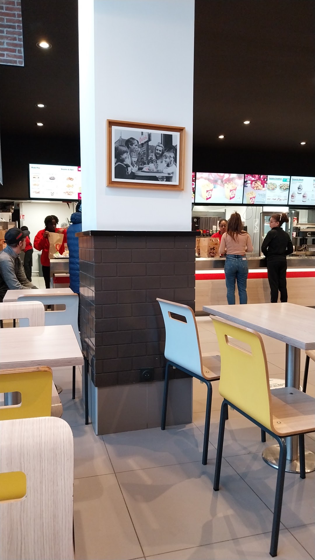 Personnel agréable et toujours de bonne humeur, un restaurant plutôt propre. J’enlève une étoile car l’attente debout face au comptoir pour récupérer sa commande( réglée sur les machines )est long et désagréable. Pensez au service à table
