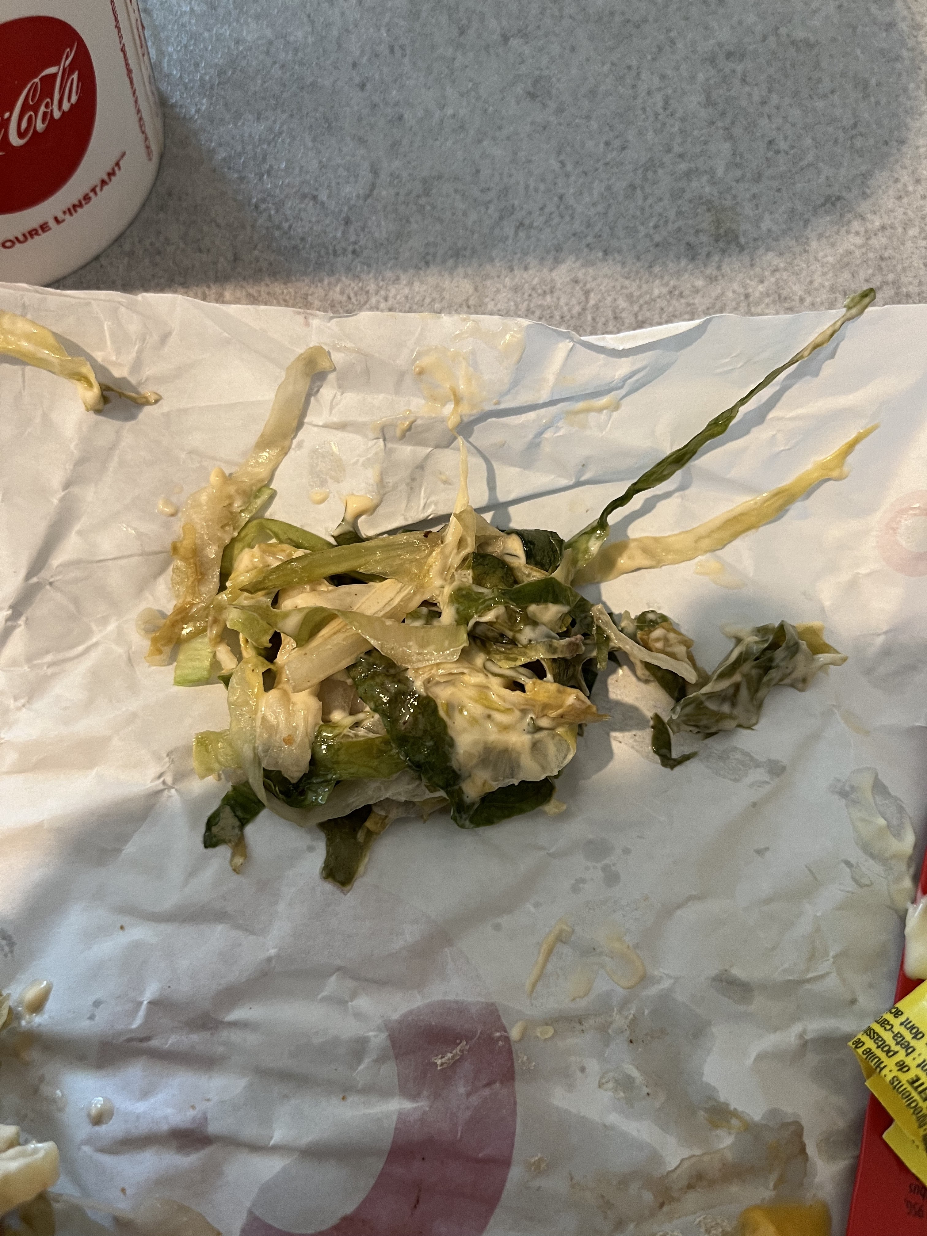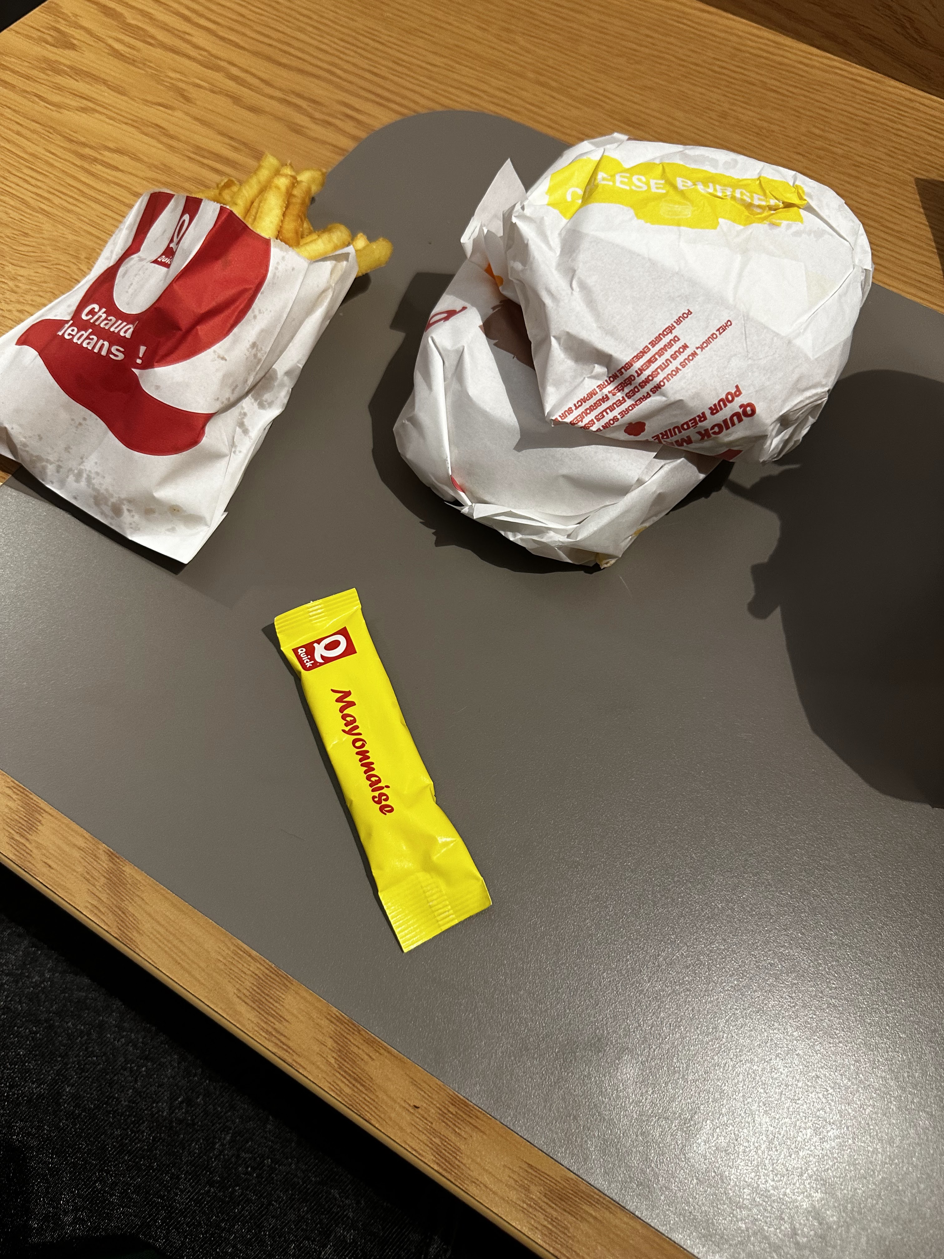 J’ai pas demandé de cheddar sur mes frites et en plus je me retrouve avec un minuscule hamburger tout sec (ClassiQ onions) ! Dégoûtée.