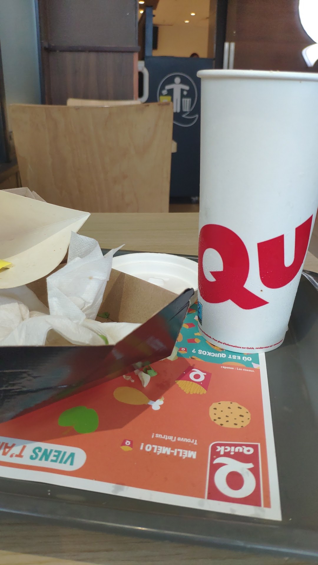 50 € mis à la poubelle 3 menus aucun est arrivé minimum tiède frites froide les barquettes même pas à la moitié la boisson même pas gazeuse bref un non retour honte à vous 50 euros c est un budget plus jamais le Quick
