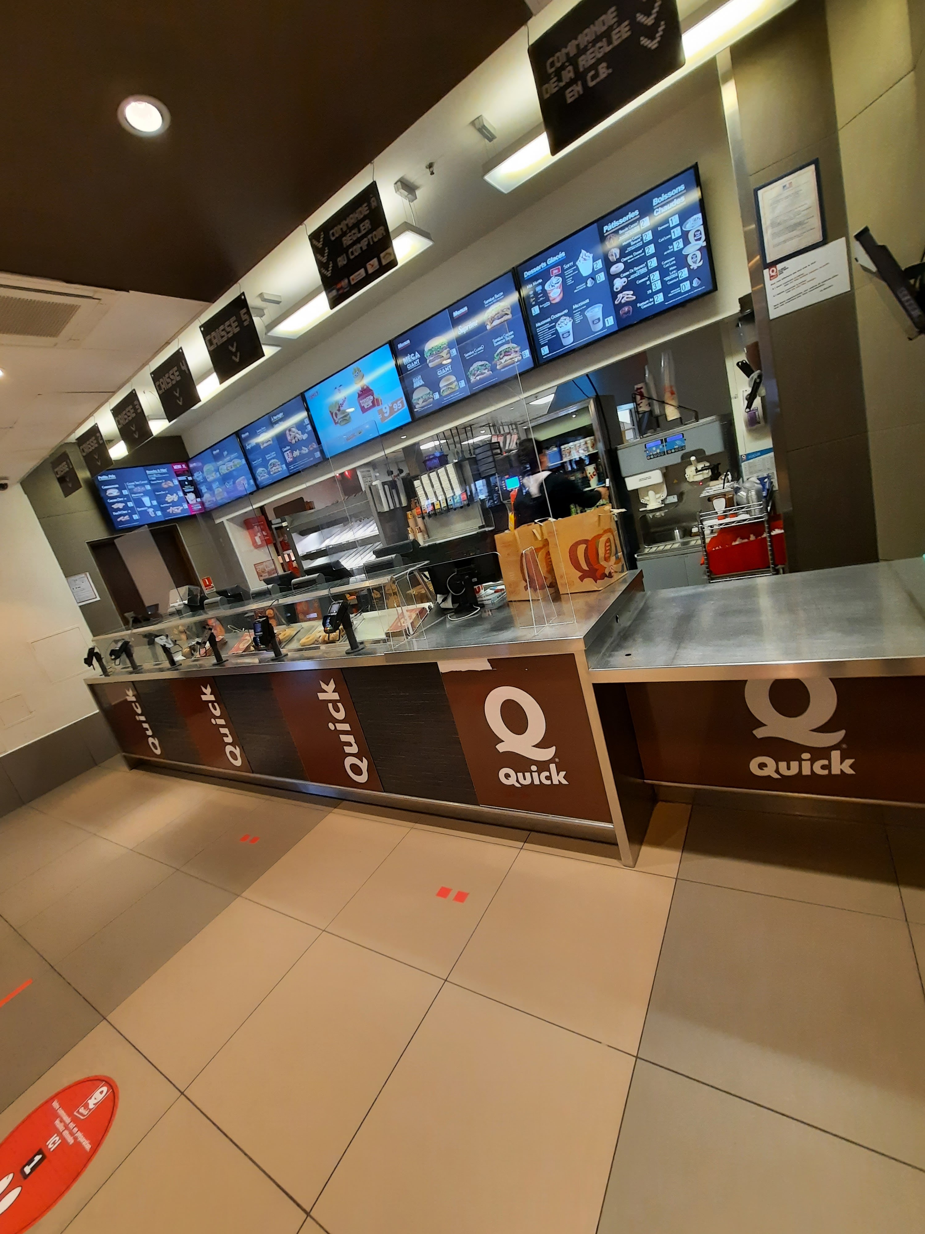 Restaurant qui s'est dégradé avec le temps, aspect sale. Les numéros de commande sont hélées. Pire qu'une poissonnerie. Horrible, limite honteux d'aller au quick maintenant. Nul je me suis senti oppressée.