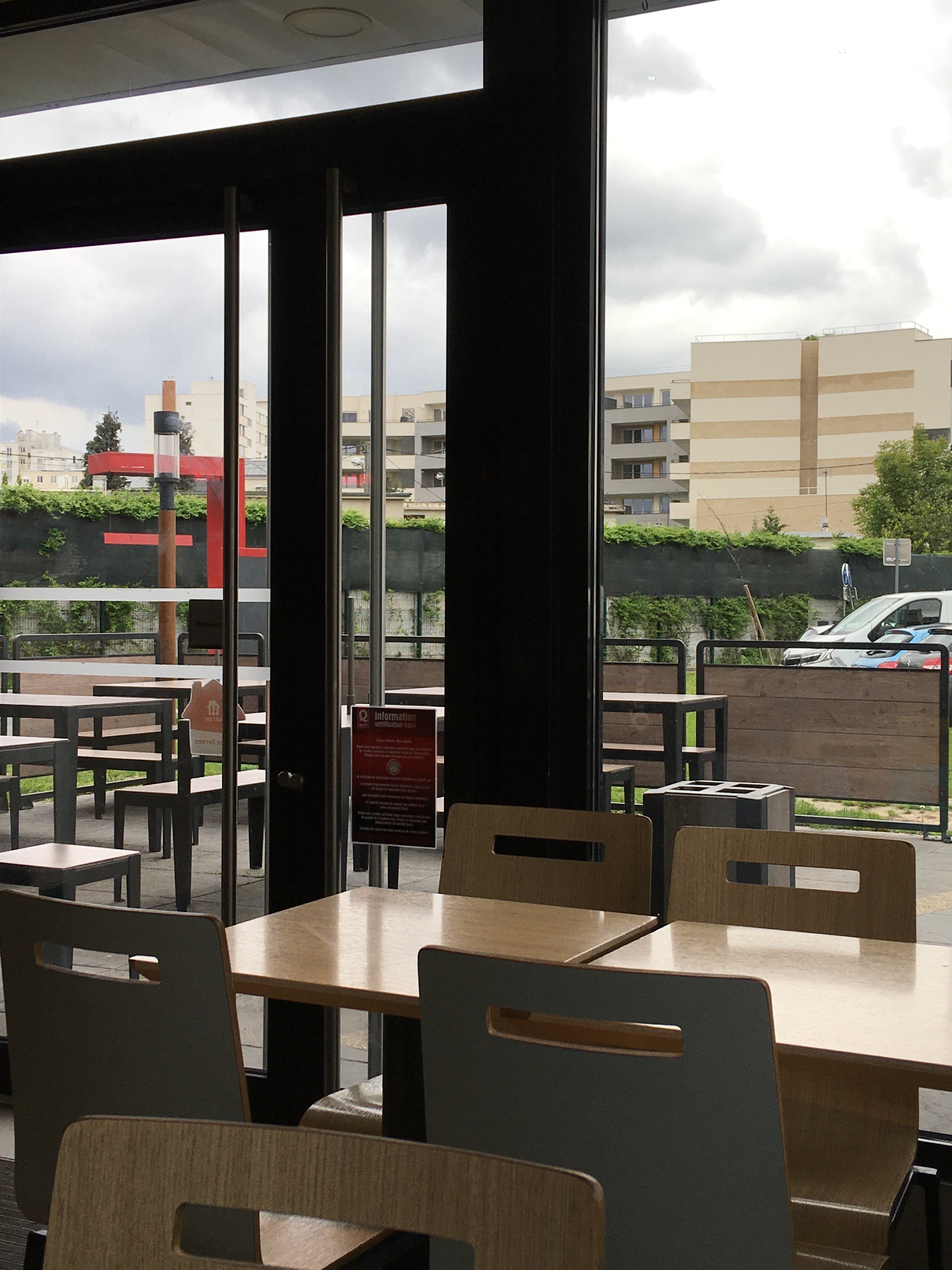Restaurant uniquement à emporter et drive ou sur place en terrasse. Port du masque obligatoire pour les plus de 6 ans. Sinon personnel agréable, mais caissière un peu stressée ce jour là, peut être dû à la reprise (après le confinement) il y a eu beaucoup d'oublis sur ma commande !