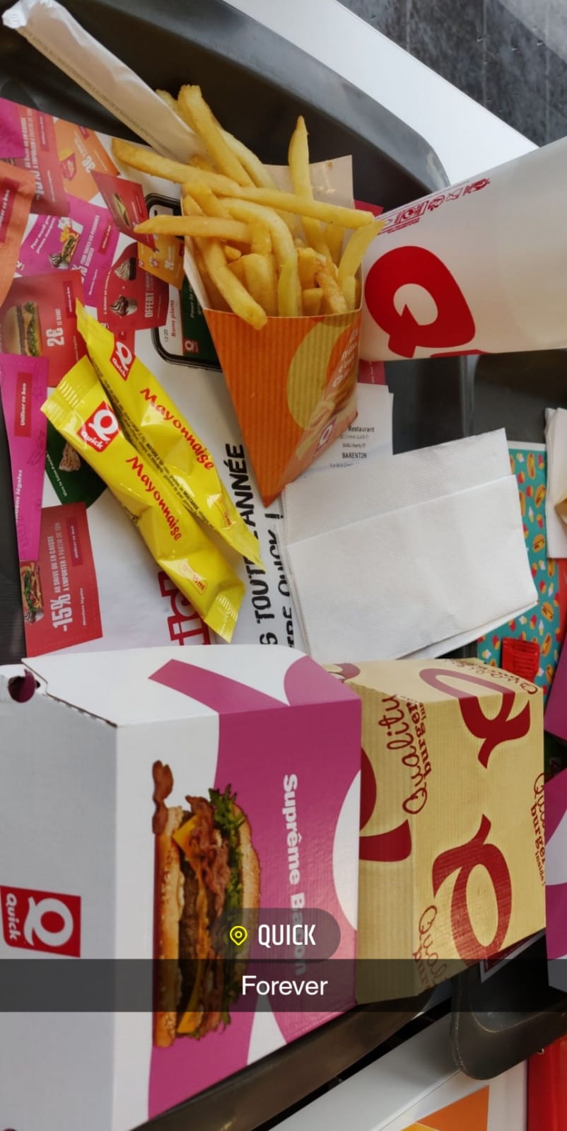 Quick étant mon fast-food préféré, j'adore le goût. Petit bémol c'est souvent tiède... Heureusement il y a maintenant un micro-ondes à disposition pour faire réchauffer, bien chaud c'est tellement meilleur ! 🤪