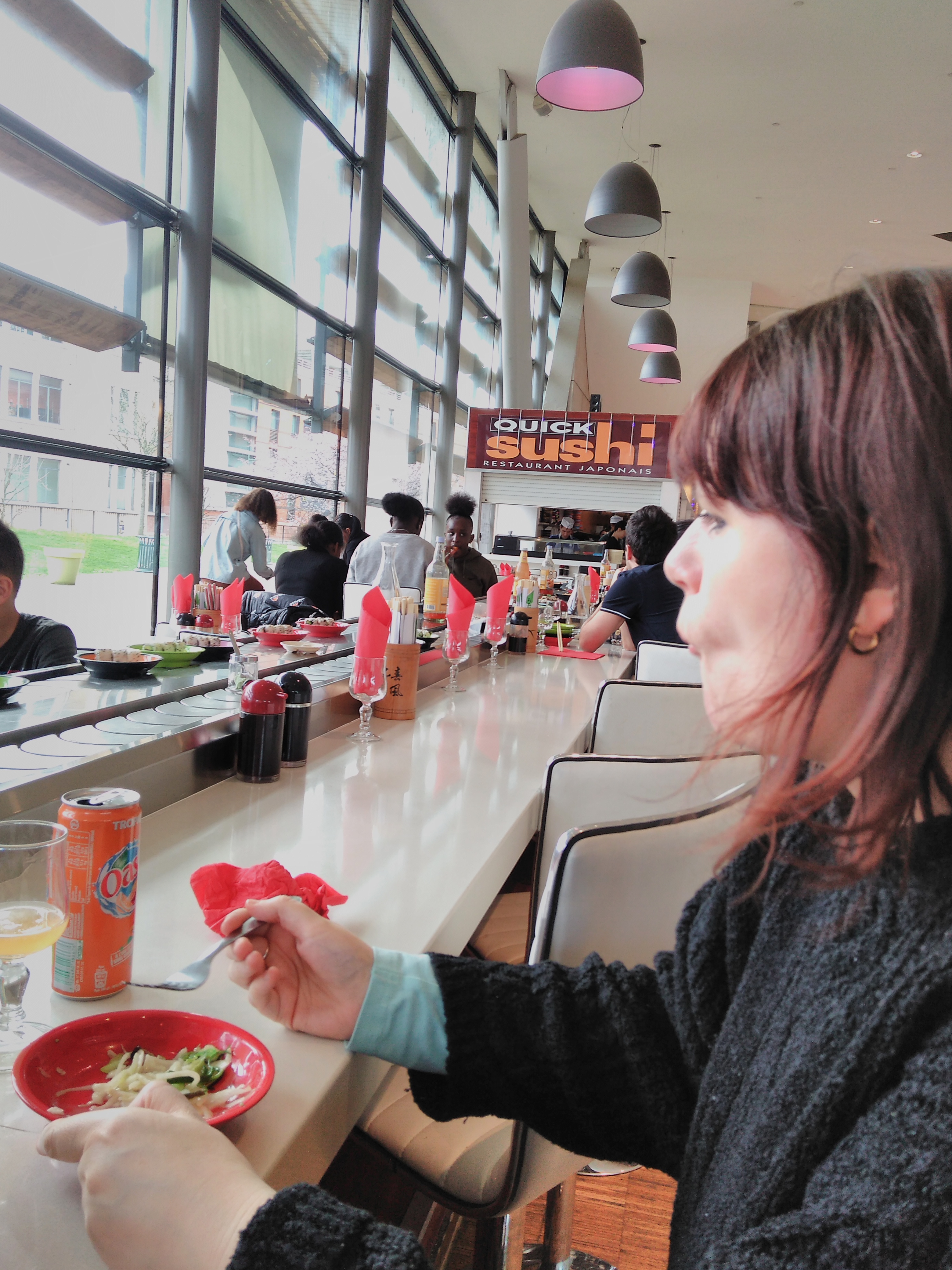 Ce qui est amusant, c'est le principe de prendre ce qui nous fait envie sur le tapis roulant. C'est à volonté donc on fait vraiment comme on veut. En revanche, ce n'est pas de la haute gastronomie ! Mais pour le fun, pour déjeuner entre collègues ou en faisant ses courses...