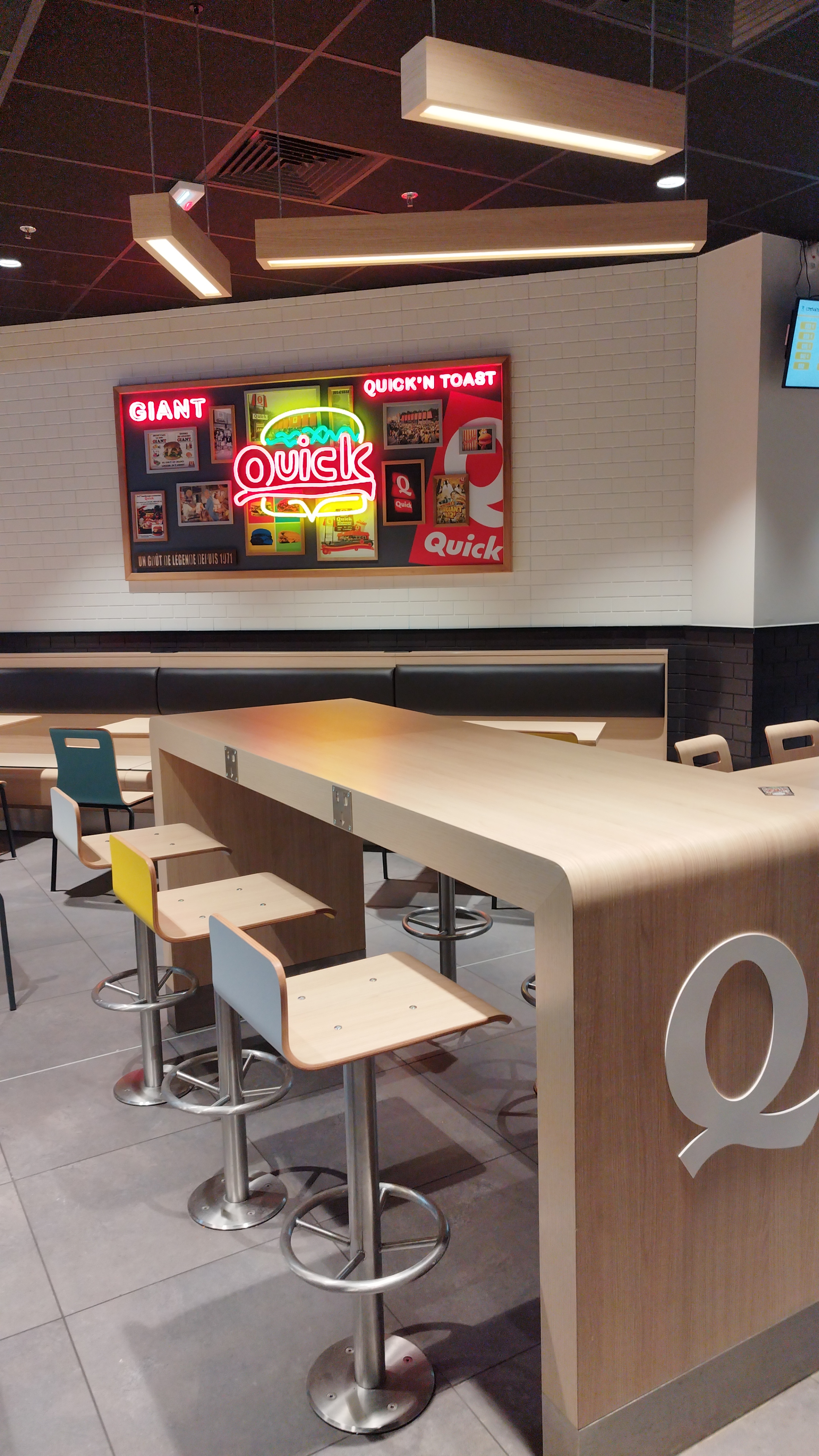 Enfin un Quick près de chez Nous! Le patron est adorable, à l écoute de ses clients et sur le terrain! Il a offert des pâtisseries aux clients table par table pour s excuser de la queue. Les serveuses sont sympas et drôles . Le resto est grand et spacieux.