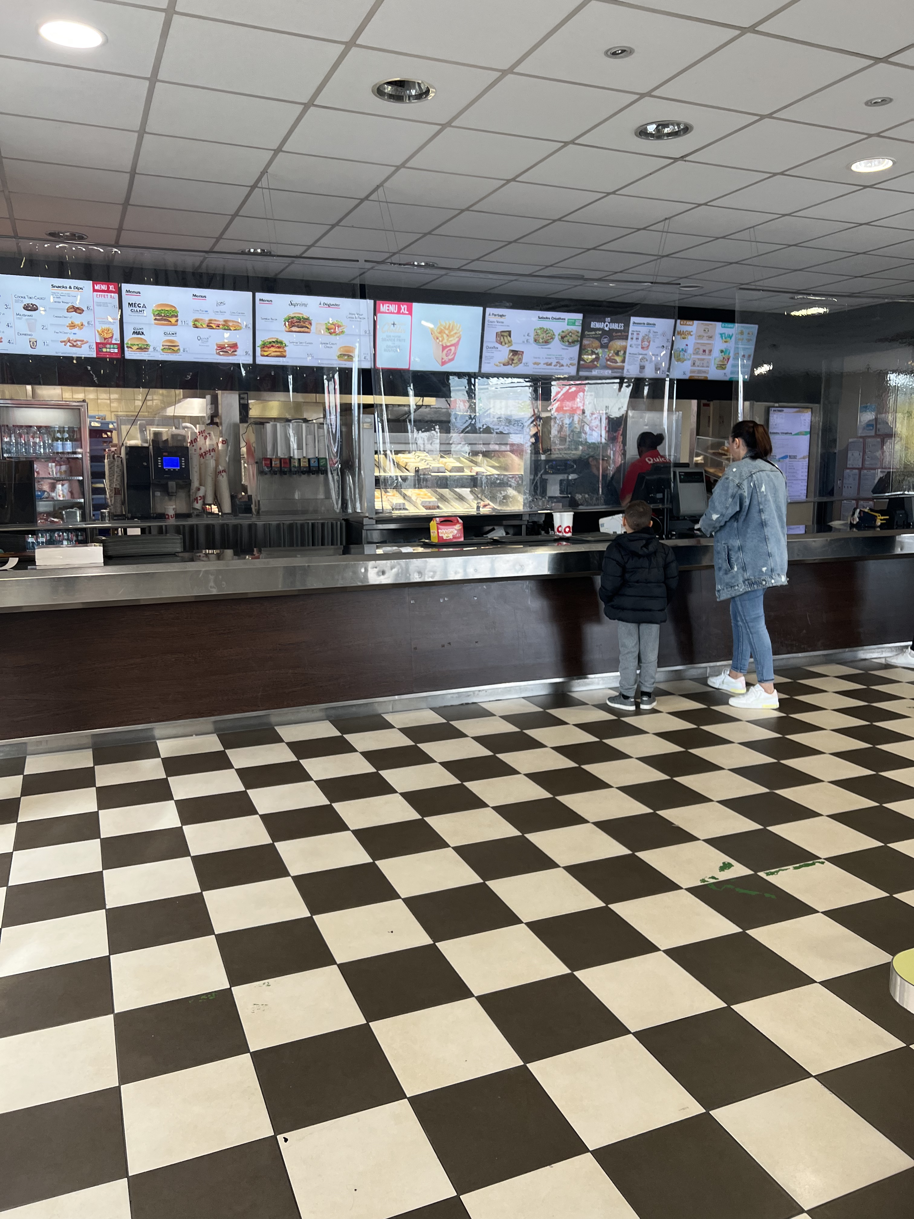 J’adore Quick donc j’y suis allé, un monsieur nettoyait les tables à chaque fois que des clients s’en aller donc pour le coup rien à dire niveau hygiène. Le service n’était pas très long (environ 10min) ce que je trouve correct car travaillant dans une autre enseigne de fast-food je compatis fortement . Les équipiers pas très aimable malheureusement, je veux bien comprendre que ce soit compliqué de tout géré en même temps et qu’ils sont en plein rush mais un p’tit sourire ne fait pas de mal. La nourriture est bonne mais ça se sentait que les burgers étaient prêt depuis un bon moment et malheureusement les frites était tiède (presque froide). Ils ont rénové le resto ce qui est très bien ( des prises pour charger les téléphones à disposition, les toilettes super propres etc. Dommage que les jeux pour enfant n’ont pas été ouvert.) Je recommande Quick car c’est très bon mais il faut revoir certains point dans ce resto. En tout cas merci beaucoup du service.