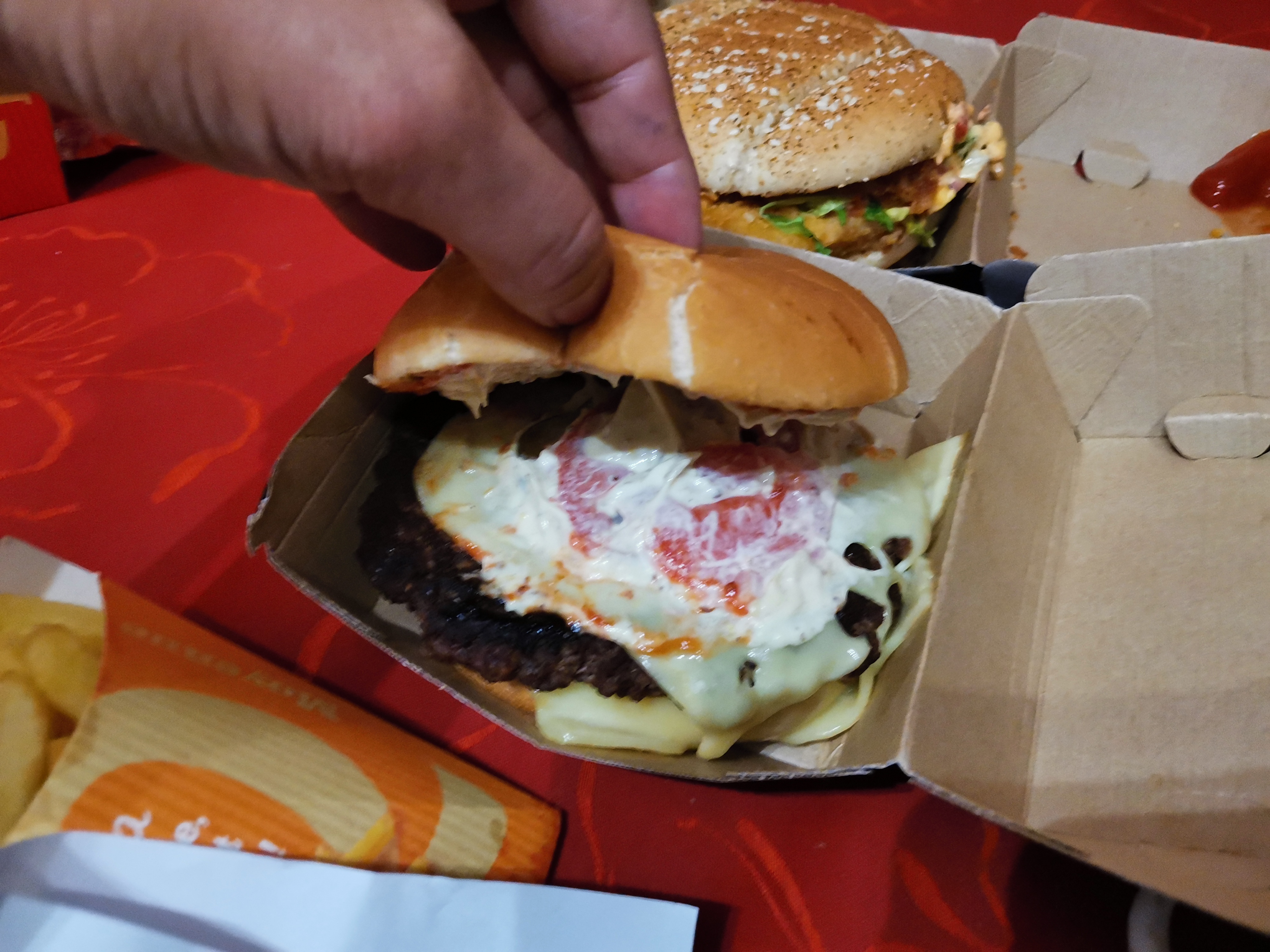 Je peux comprendre que la fin de service arriver à grand pas! Fatigué et hâte d’aller au lit mais les gars ! Je suis arriver 21h vous finissez à 22h c’est le dernier round faites un effort ton salaire reste le même mais respecter nos commandes ! J’ai pris un -Spicy chichen seul j’ai eu un suprême rien à voir J’ai pris un giant max j’ai eu un giant simple J’ai pris long chicken j’ai eu beef bacon burger Des truc qui ont rien à voir faites un effort svp la prochaine fois… et aussi le pain sec sur les bord et steak cramé y’a rien qui aller, le service à revoir la politesse et pourtant j’ai essayer d’être poli et courtois mais votre non professionnalisme et a revoir.