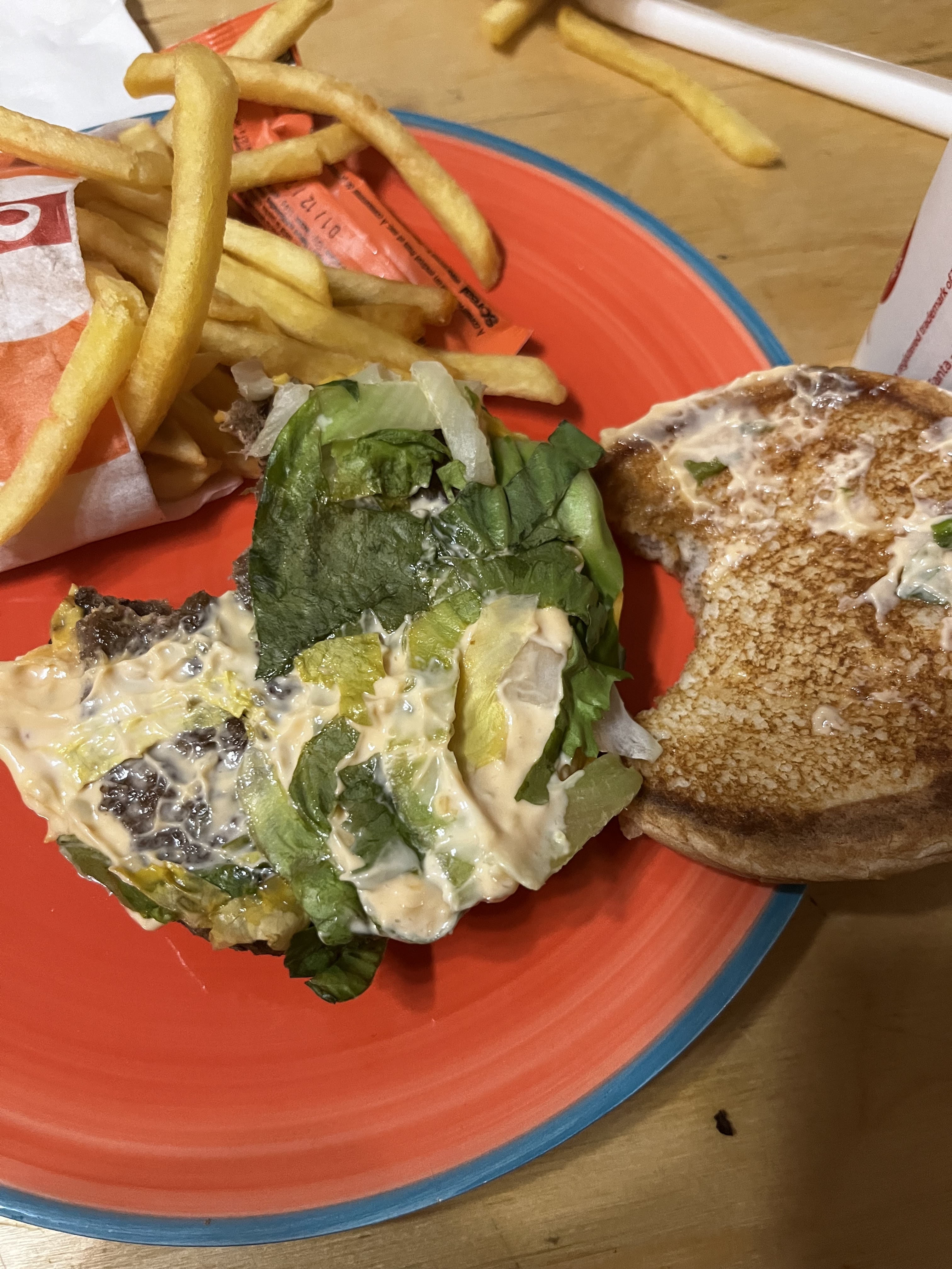Mauvaise surprise.. arrivé à la maison on ce rend compte que nos 2 menus Giant max sont des simples burgers! La salade.. de verte elle ai passée à noir!! VRAIMENT IL FAUT QUE VOUS FASSIEZ BCP D EFFORTS!