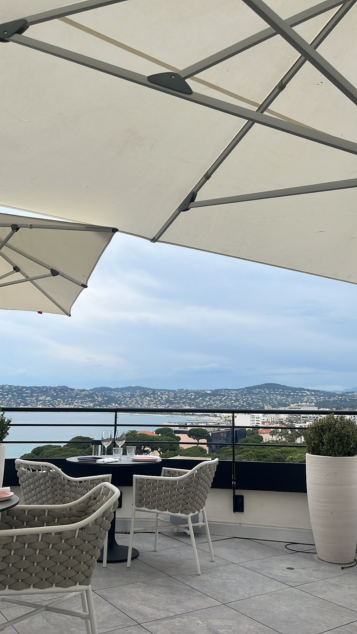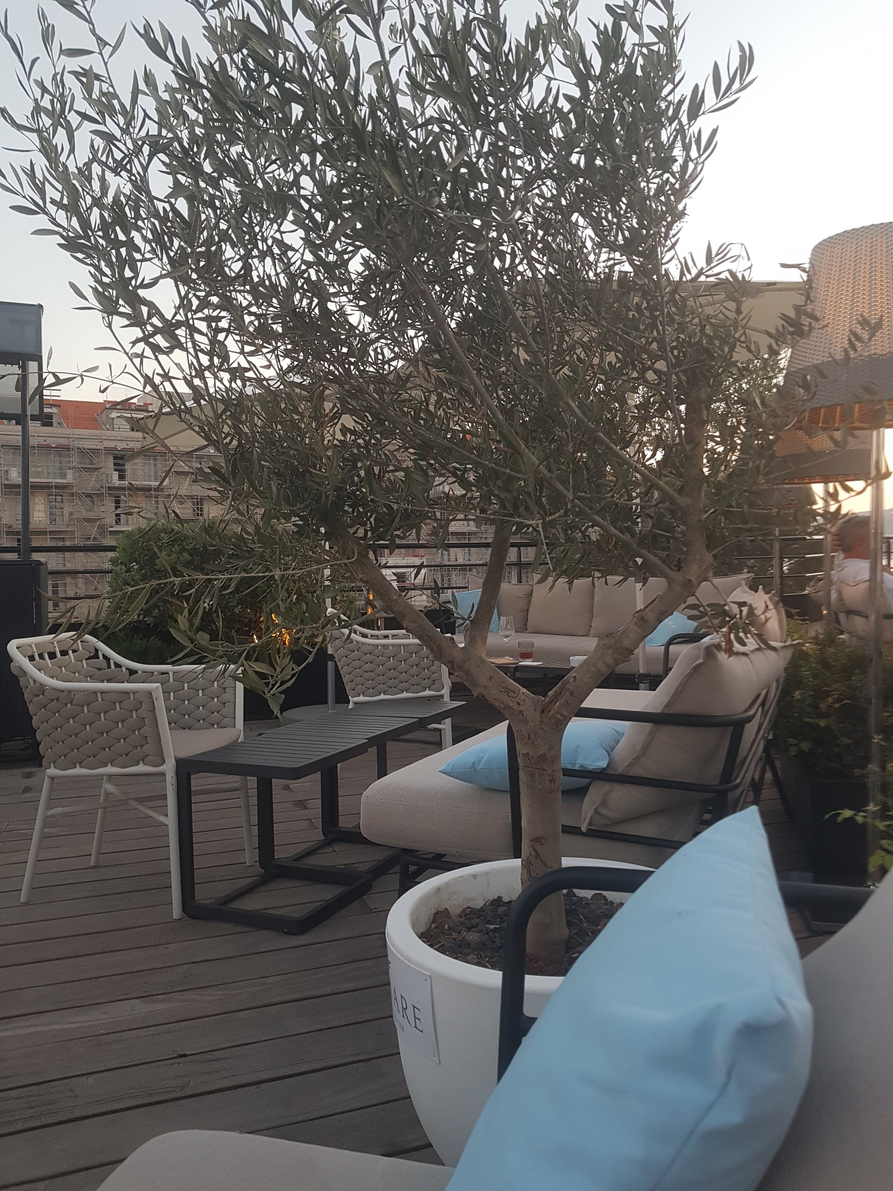 Magnifique terrasse au 5ime étage de l'hôtel MGallery 1932 à Juan les Pins. Vue imprenable à 360° . Bon choix de cocktails et boissons. Ambiance musicale par DJ