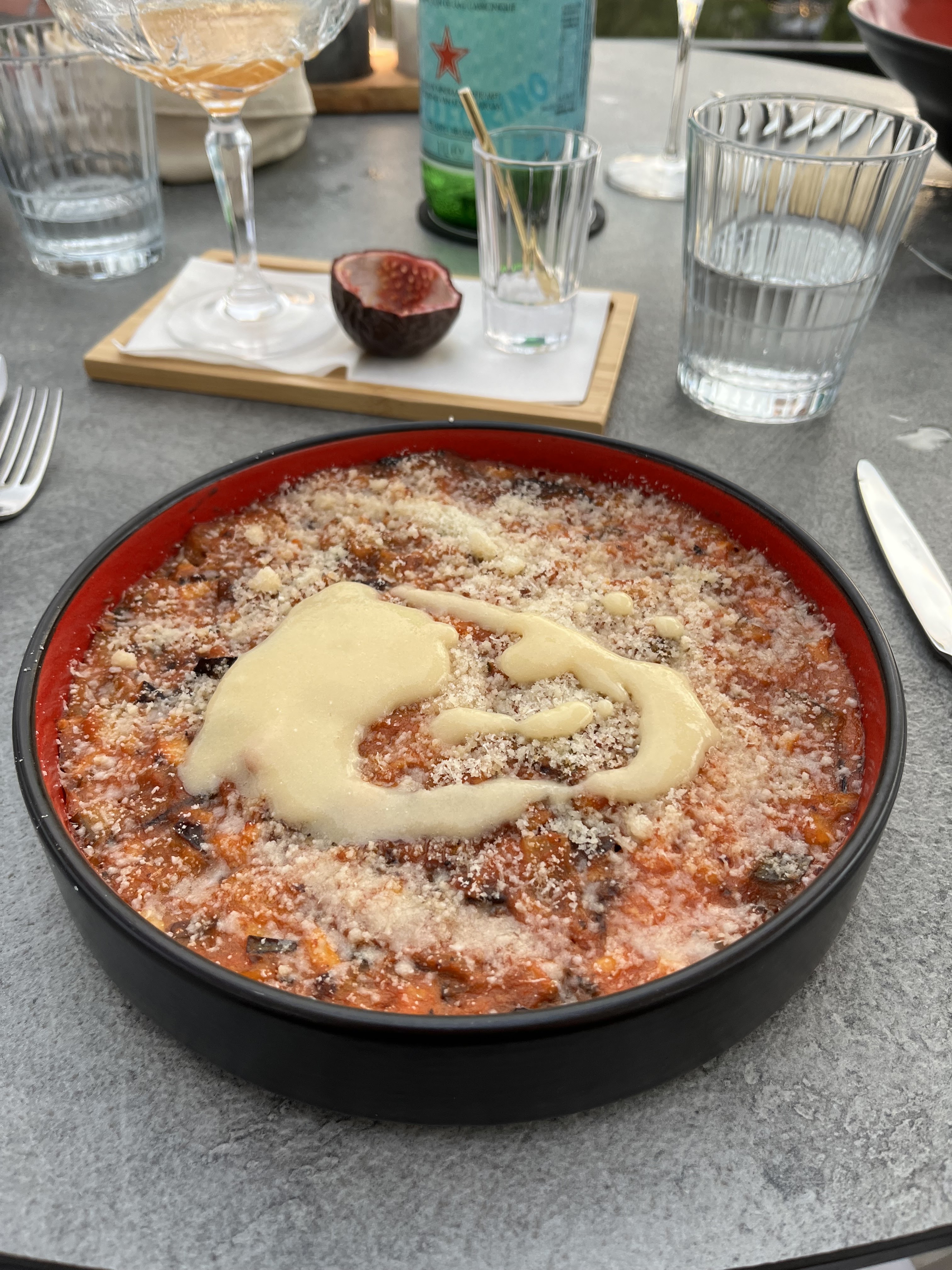 Très belle soirée avec vue incroyable, dj, belle carte de cocktails et un bon dîner. Je recommande vraiment ce restaurant. Nous y retournerons aussi bien pour manger que pour prendre un apéritif en profitant de la vue et de la musique. En entrée assiette de tapas on voyage entre l'Espagne et l'Italie. En plat risotto à la milanaise et des plins à la truffe d'été.......très bien et pour finir, tarte au citron destructurée......très bonne car très acide. Petit bémol plus de pluma ibérique.......et sur la carte en viande c'est pluma ou côte de boeuf pour 2.......à 120euros dommage qu'il n'y est pas au moins une autre viande. Service très sympa....mais pas tous forcément du métier je pense.....dommage Nous avons passé une très belle soirée. Merci