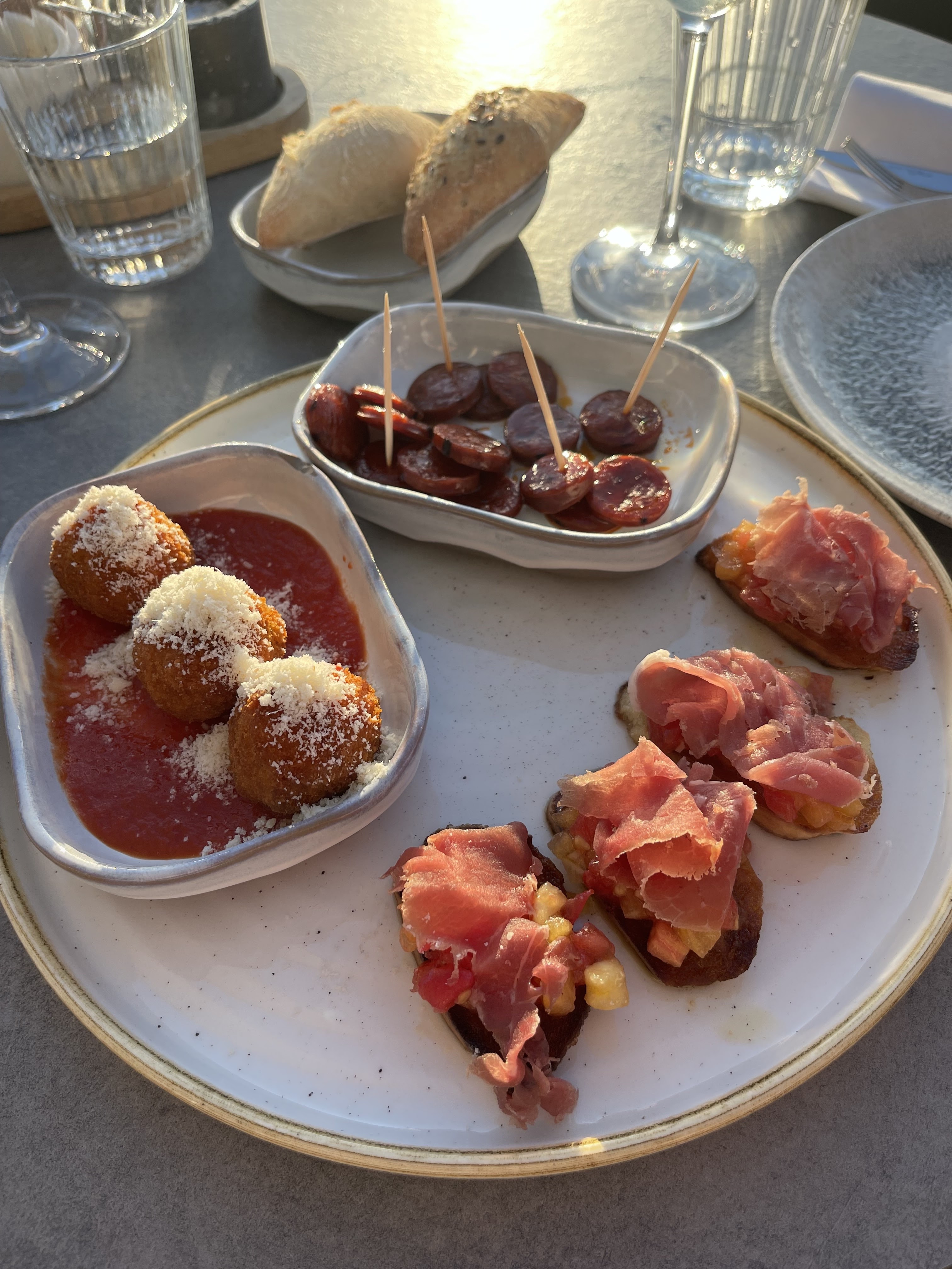 Très bons serveurs et nourriture. L'entrée avec burrata et pesto était super ! Belle vue au coucher du soleil.