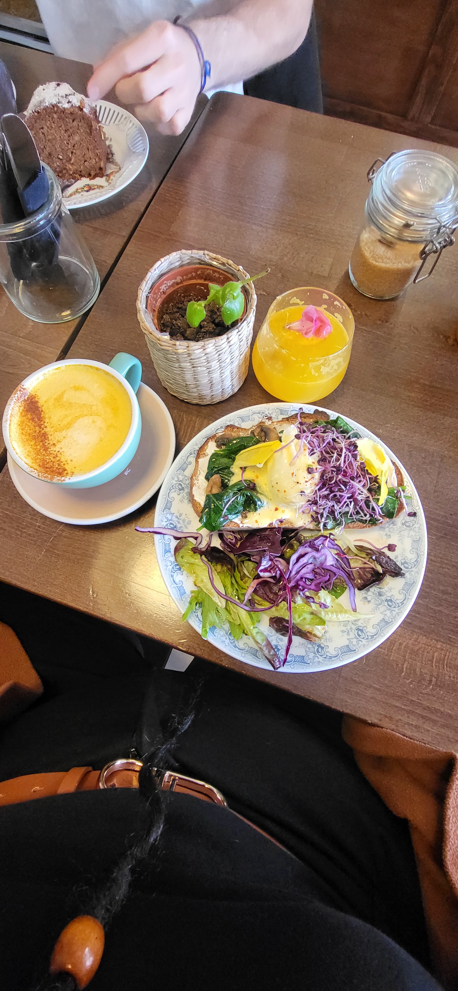 Ambiance vraiment sympa ici. Il y avait beaucoup de monde vers 11h-12h lors de notre visite, mais le service ne s'est pas senti précipité ou hostile. J'ai eu les œufs Bénédicte et mon ami a eu l'avocat écrasé et la feta. La nourriture était vraiment bien présentée, même si elle n'était pas un peu trop chargée. c'était un peu difficile de savoir par où commencer 😅. Je reviendrais ici, c'est sûr. Le café était vraiment bon