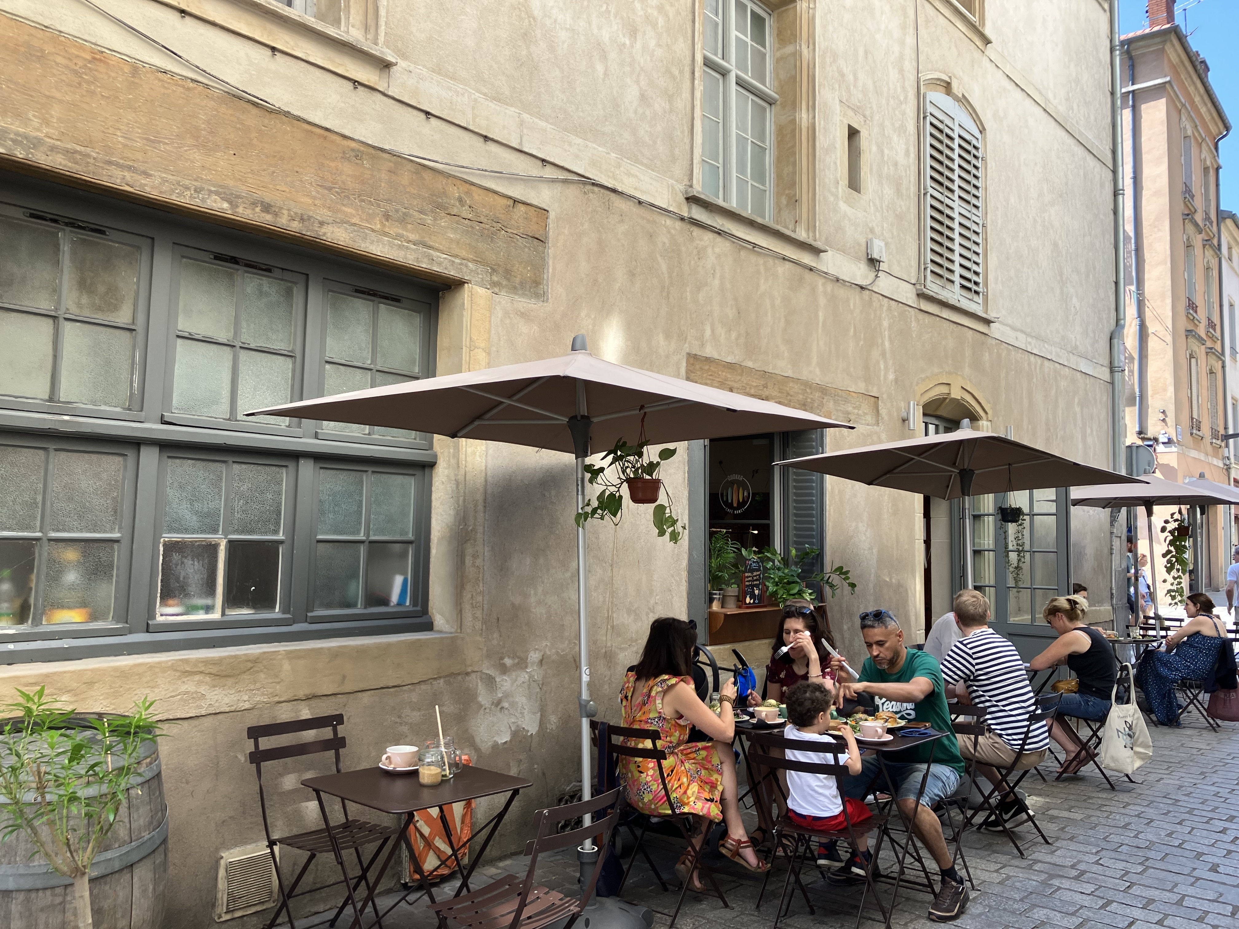 Une trouvaille fantastique au milieu de Nancy, en France - et rien de moins le jour férié de la fête du Travail. Les œufs Benedict et le Egg & Bacon roll étaient délicieux et nous rappelaient les brunchs à la maison à Melbourne. Mon mari était très reconnaissant pour un café blanc plat.