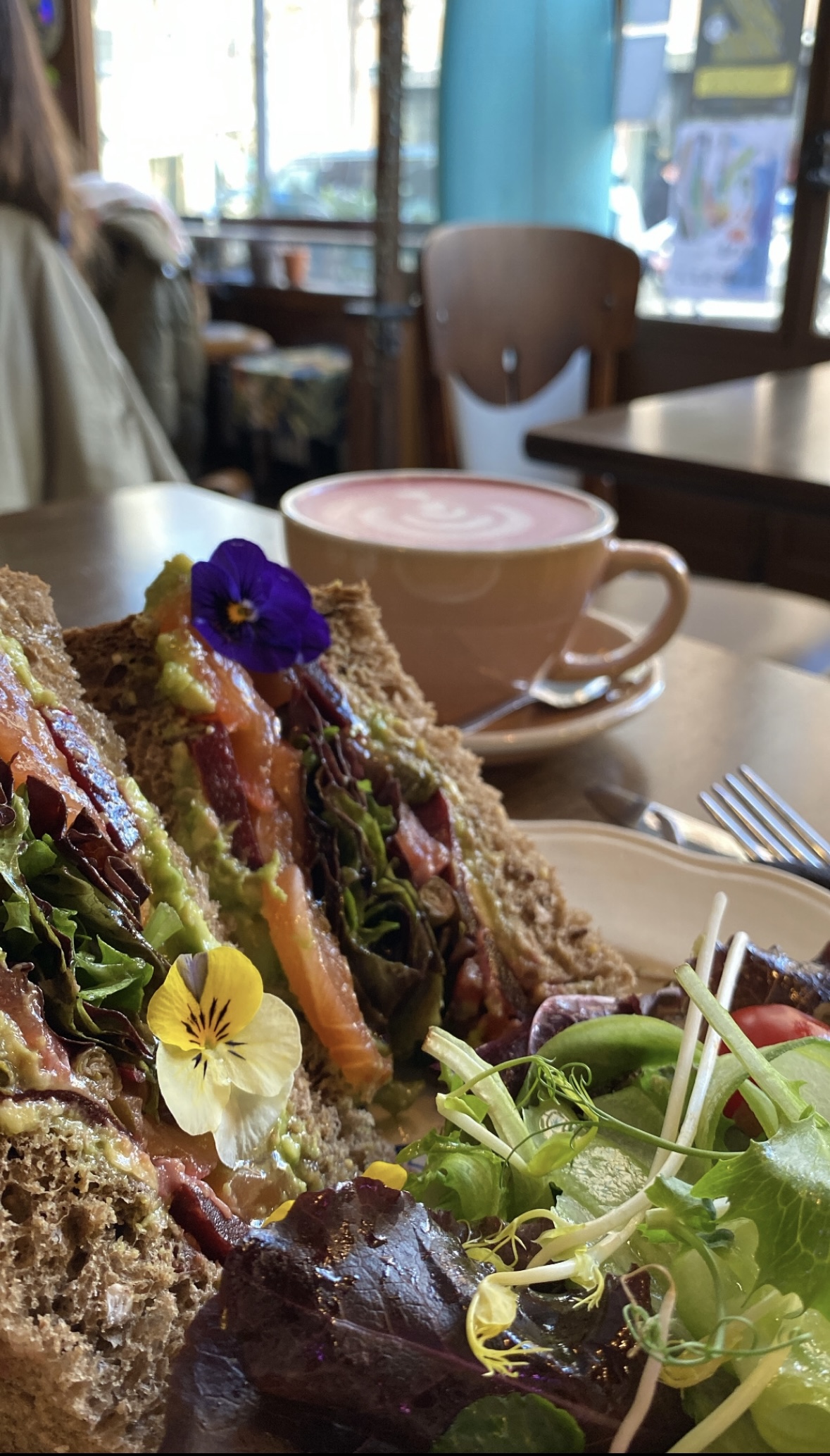 Assiette généreuse et gourmande (j'ai adoré la touche nature avec les petites fleurs et les pousses). Cadre et service agréables, une superbe adresse ! *en mode brunch