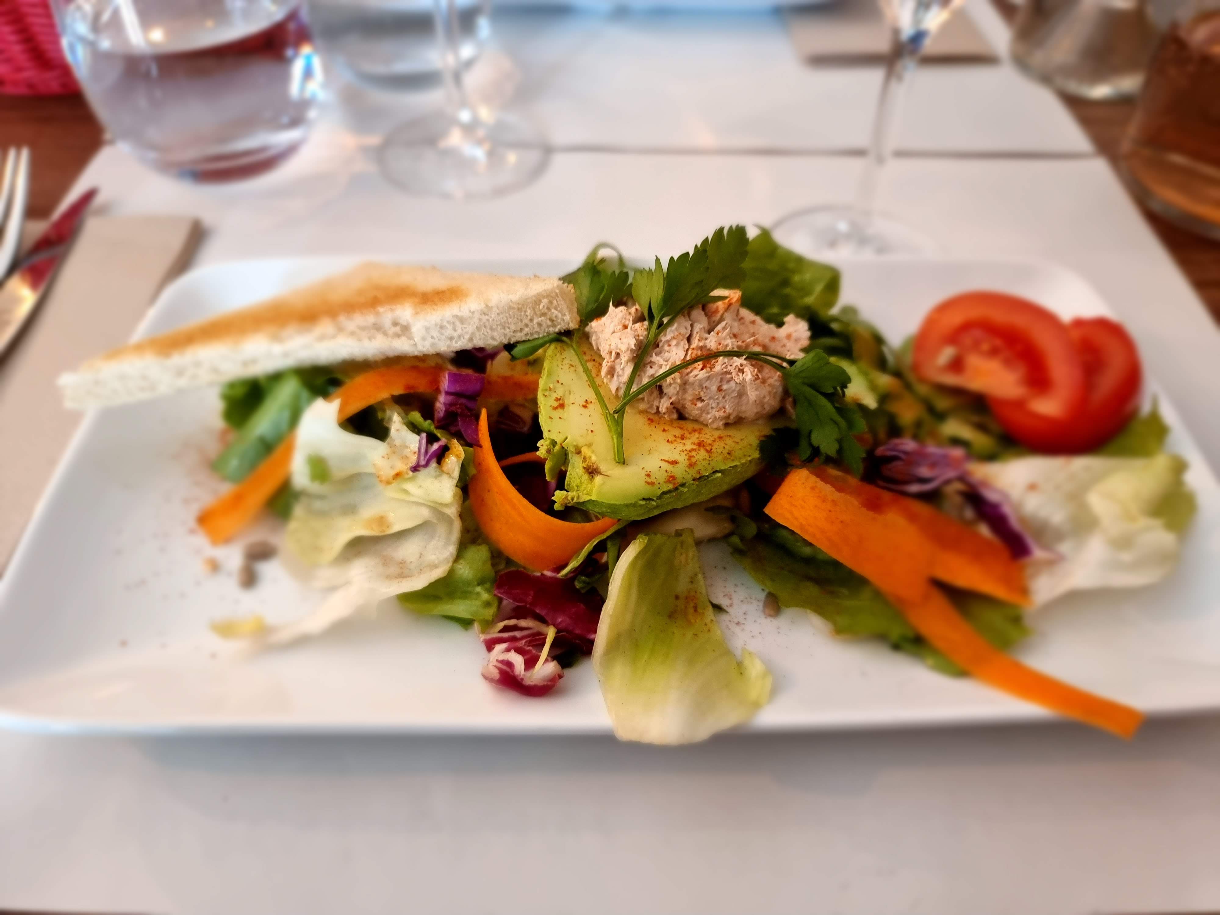 Correct dans l'ensemble mais un peu cher pour la qualité et la quantité des produits présents dans l’assiette. Je m'explique : mon mari et moi avons dîné à la jolie terrasse de ce restaurant, je trouvais le lieu charmant. Nous avons commandé chacun un verre de vin et une carafe d'eau. Il ne font pas d'eau en carafe soit disant à cause du covid. Je ne vois pas la différence entre laver une carafe ou une assiette et un verre. Nous avons donc prix une bouteille d'eau de source à 1,90 € ce n'est pas excessif, mais c'est plus, la mauvaise excuse qui m'a choqué. Le verre de vin sur la carte était marqué à 3,50 €, mon mari à prix du rosé et moi du blanc. Le serveur m'a demandé si je voulait du sec ou du doux, j'ai dis, du doux. Lorsque j'ai eu la note en fin de repas j'ai vu que mon verre était en fait à 4,50 €, j'aurai préféré que le serveur me précise la différence de prix lors de la commande, même si cela n'aurai rien changé, je ne suis pas à 1€ près, mais j'aurai trouvé cela plus honnête. Nous avons pris le menu à 25.90 €. L'entrée était parfaite, mon mari avait prit une salade de gésier et moi du chèvre au coulis de betterave. C'était très bon. Ensuite le plat de résistance, mon mari avait pris une cuisse de canard rôti accompagné de frites , il s'attendait à une cuisse de canard fraîche rôti, en fait c'était une cuisse de canard confite grillé au four. Il l'a trouvé un peu sèche. Moi j'avais pris la brandade de morue accompagnée de salade. La salade était fort bien assaisonnée et délicieuse, mais la brandade était un peu fade en comparaison et la quantité un peu juste. Bref, j'aurai souhaité plus de brandade et qu'elle soit plus relevé en goût. Pour le dessert, mon mari avait prit l'assiette de fromage, celle-ci se composait d'une petite tranche de bûche de chèvre de 2 tranches de gouda au cumin et d'un petit bouchon aux épices. A part le chèvre, il n'a pas du tout aimé les autres fromages, trop d'épices, trop d'aromates, il c'est forcé pour tout mangé, parce que dans notre éducation on ne gaspille pas la nourriture. Moi, j'avais pris l’île flottante, c'était bon comme une île flottante. J'ai regretté qu'il n'y ait pas de pâtisserie proposé en dessert.