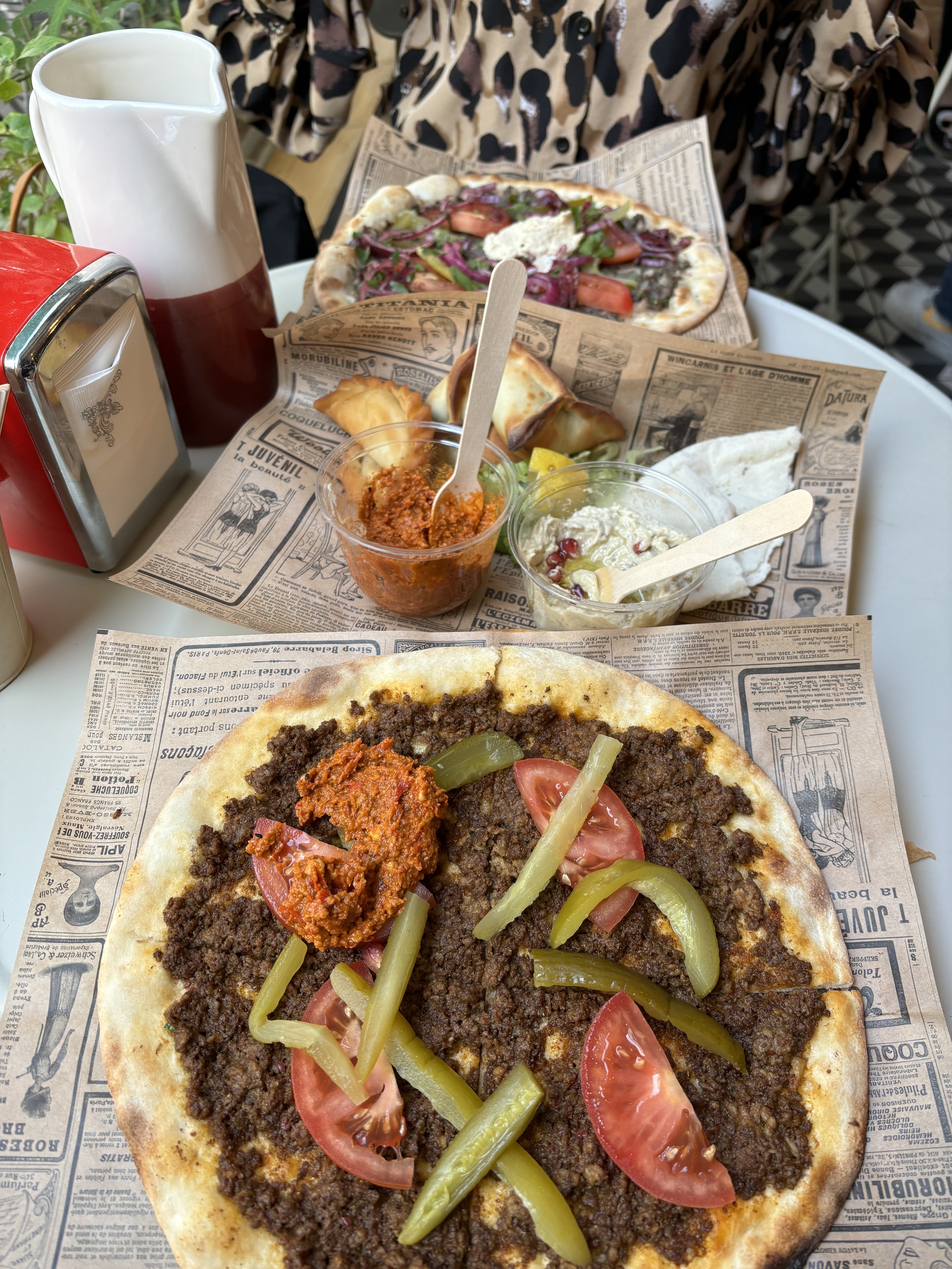 A deux pas du cirque d'hiver. J'ai goûté la fameuse pizza libanaise au zaatar version extra, très bonne. La petite limonade à la fleur d'oranger était délicieuse. Ps : Joyeux anniversaire